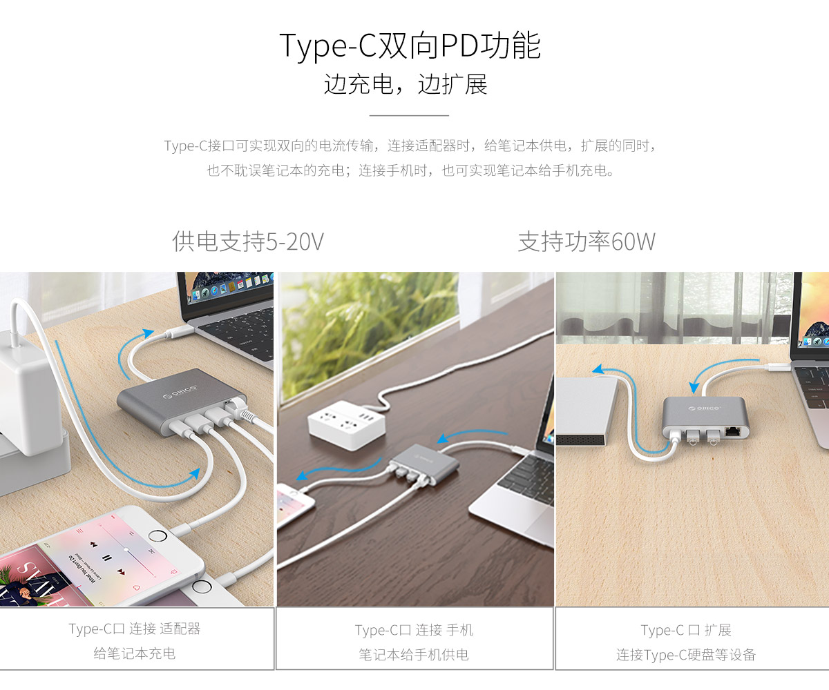 多接口多功能扩展 PD双向接口 千兆网口 多色可选