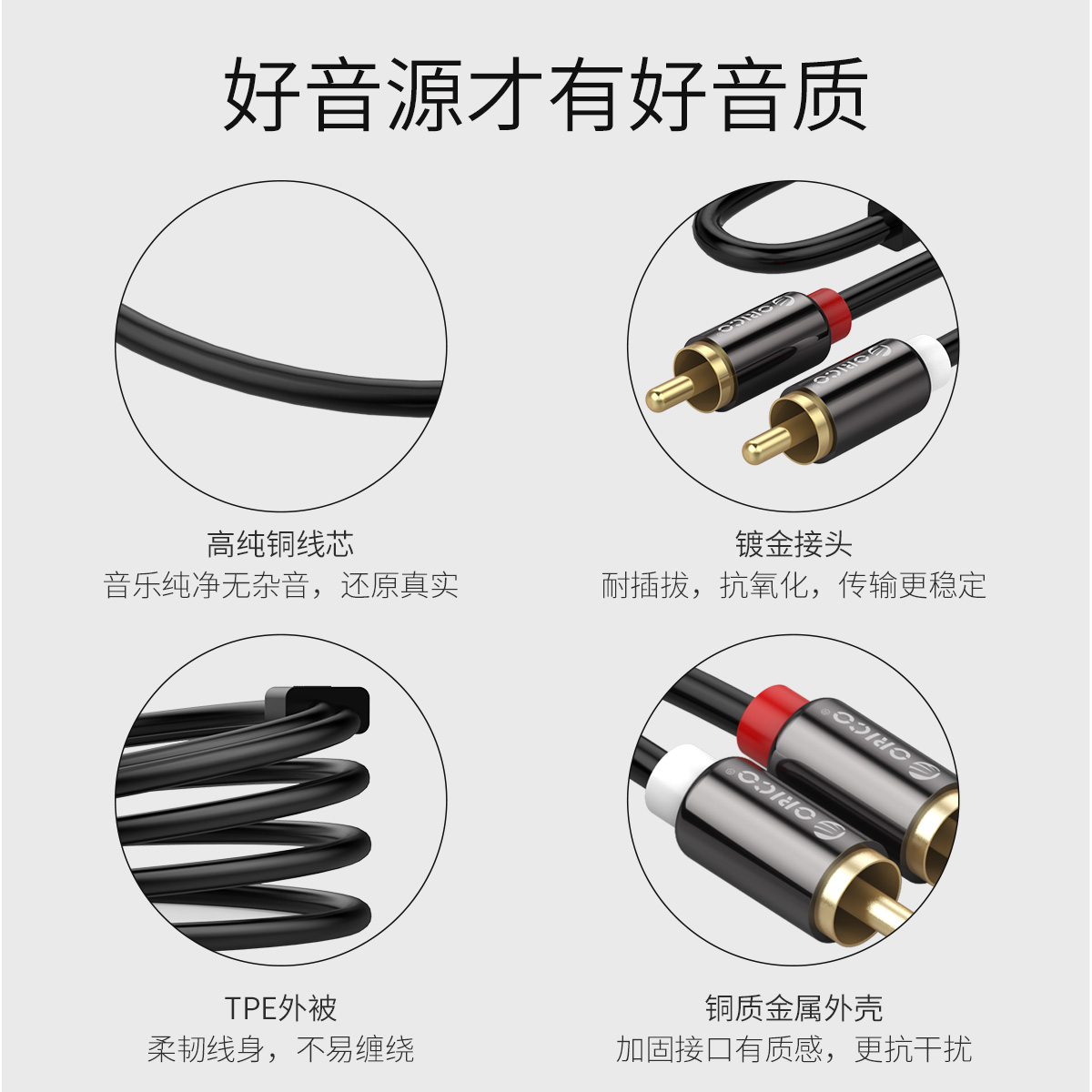 HIFI音质,纯净通透,无损传输,高纯铜线芯,镀金接头