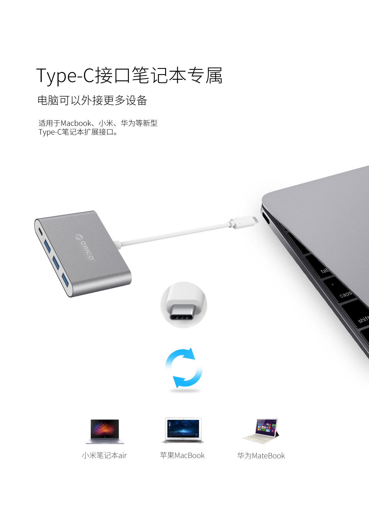 铝合金Type-C转 Type-C/Type-A多功能扩展坞