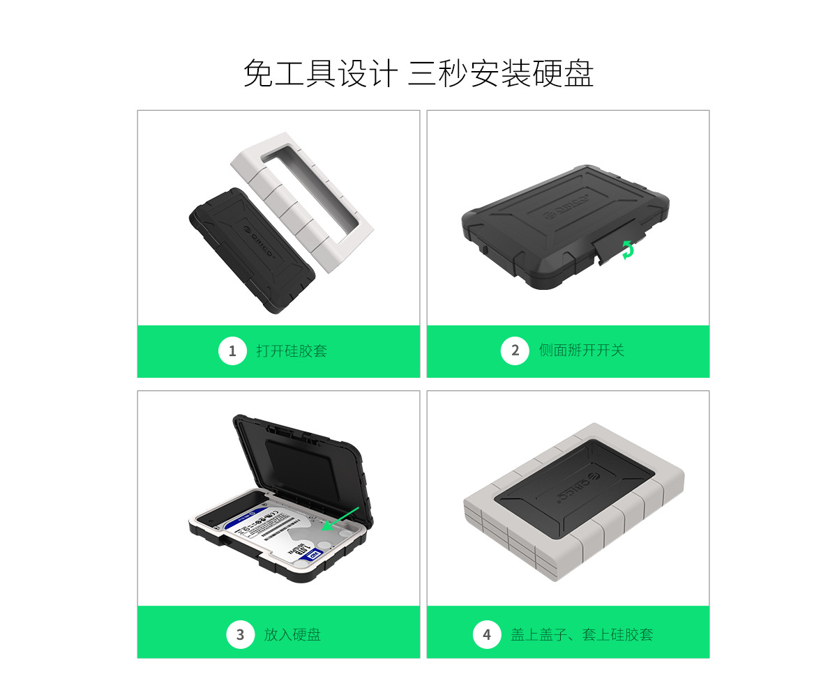Type-C硬盘盒,三防,高速稳定,2TB扩容