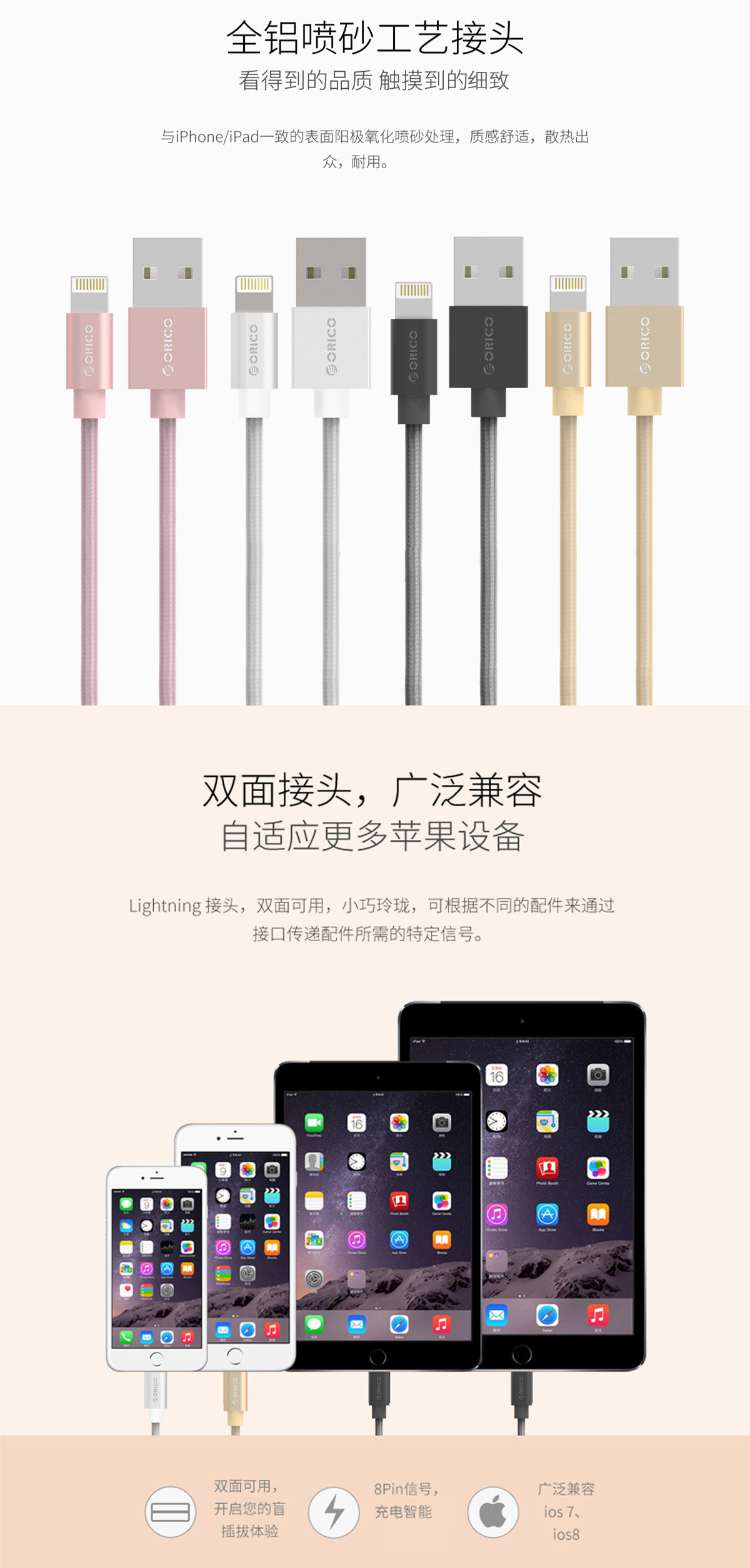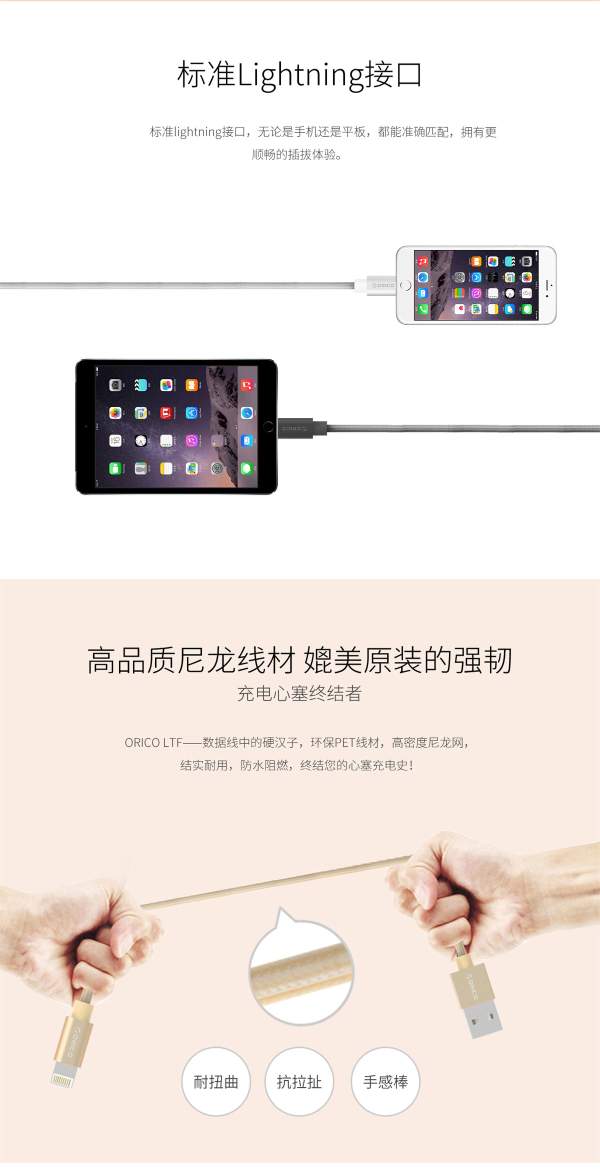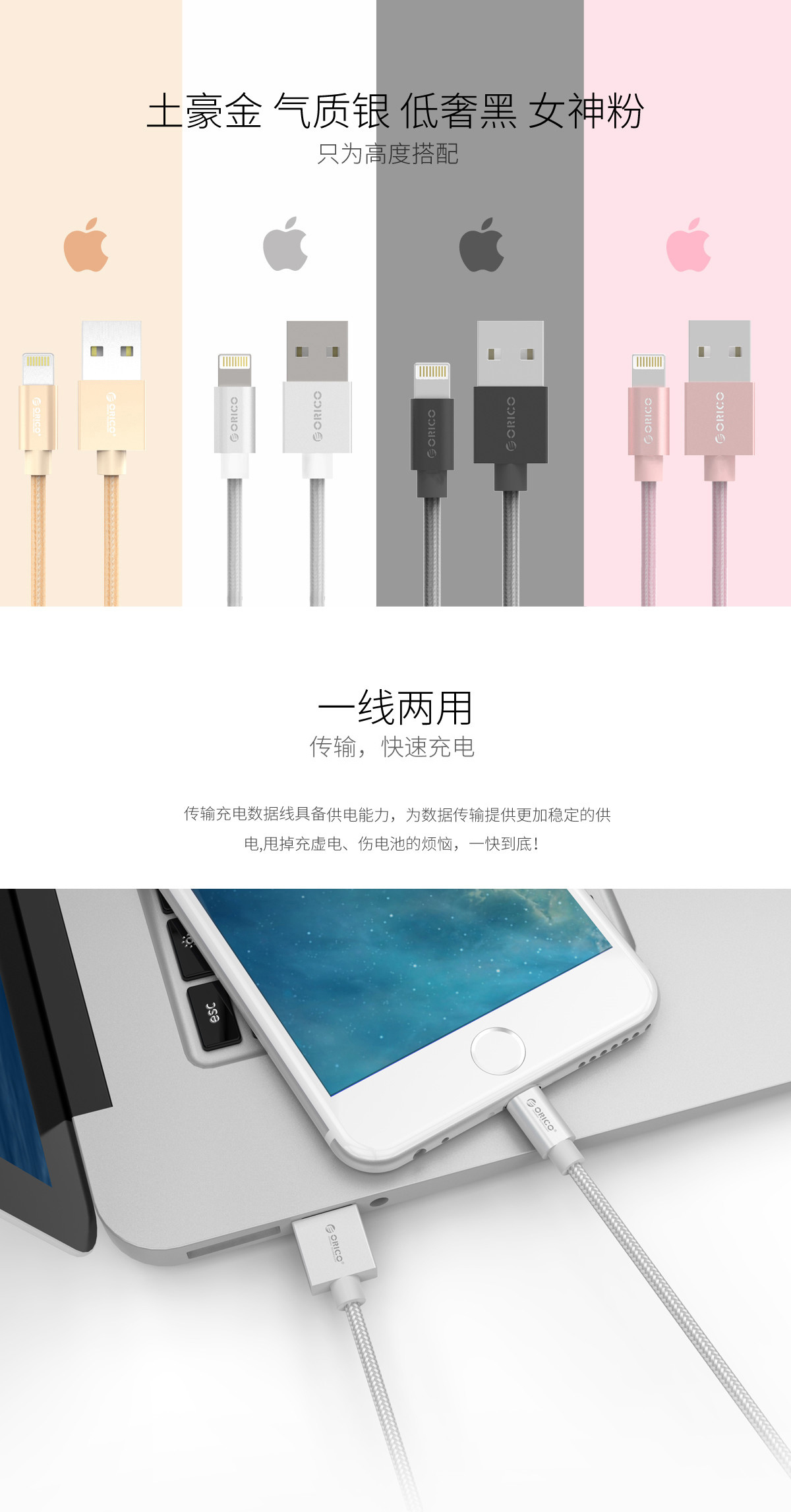 Type-A转苹果Lightning接口尼龙编织充电数据线