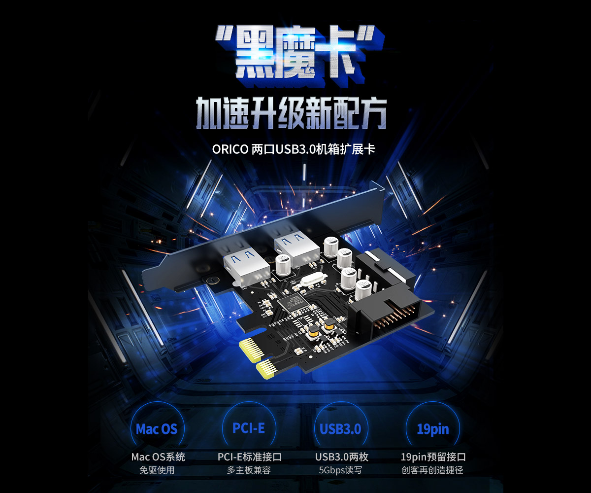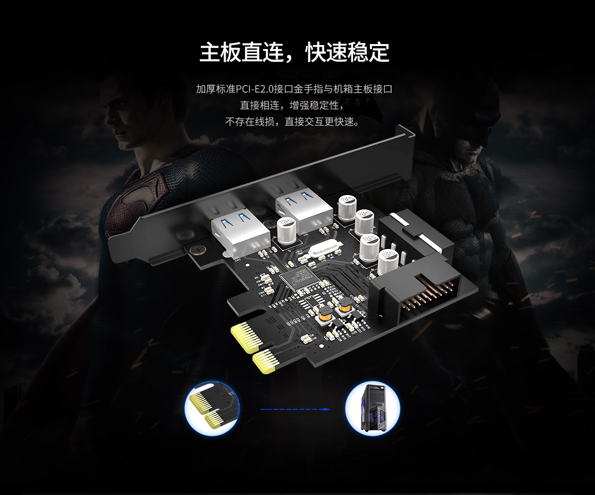 2口USB3.0 台式机PCI-E扩展卡,预留19PIN接口