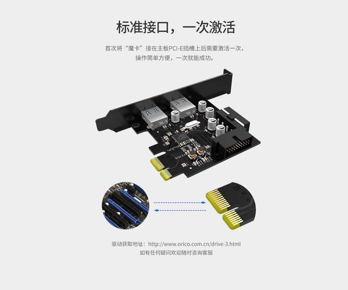PCI-E扩展卡 扩展多个USB接口 高性能主控芯片 简易拆装