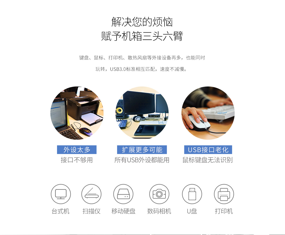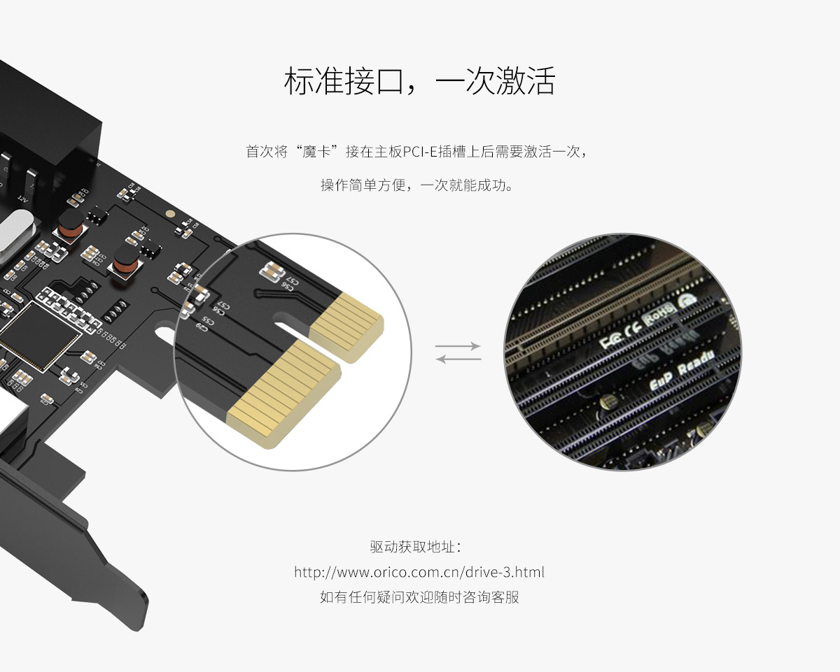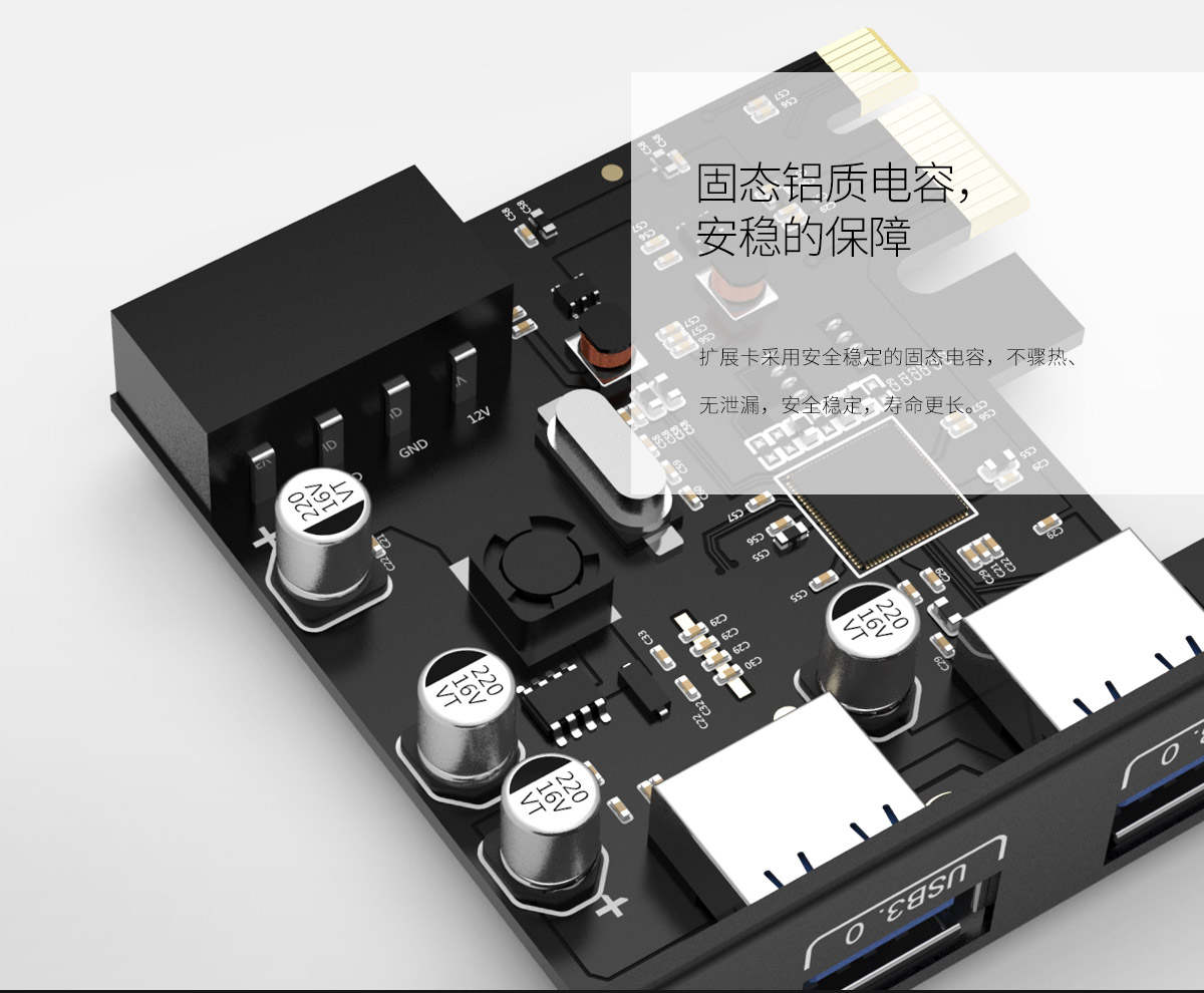 PCI-E扩展卡 扩展多个USB接口 高性能主控芯片 简易拆装