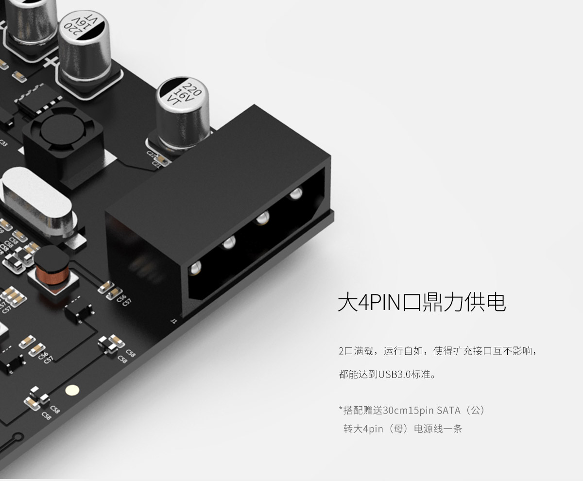 2口USB3.0 PCI-E扩展卡,4PIN口供电