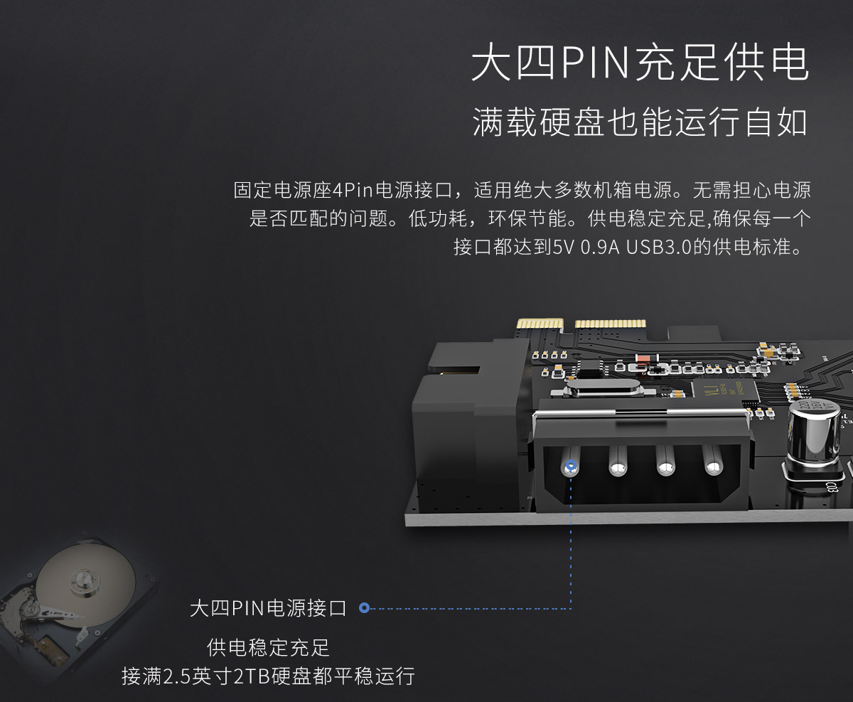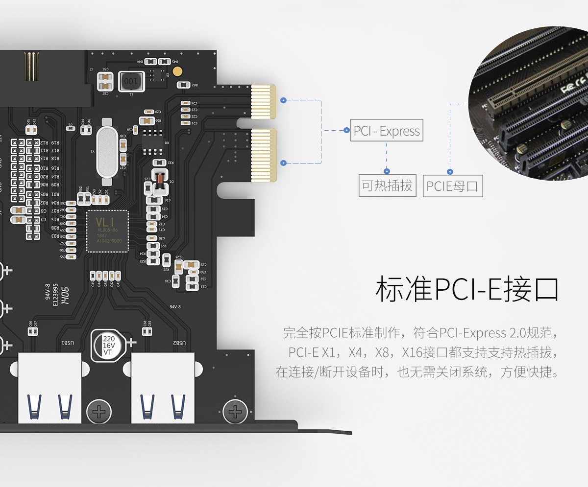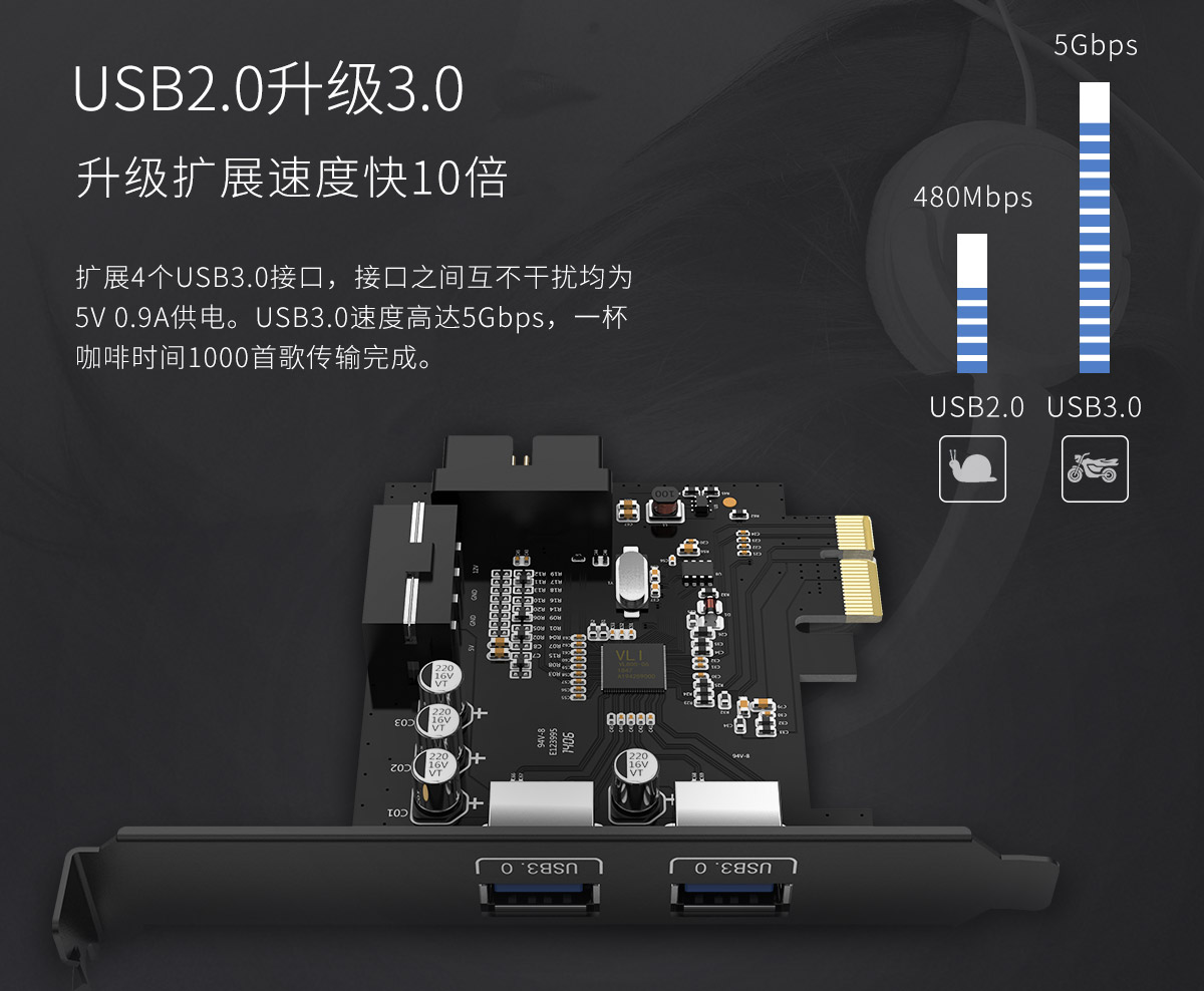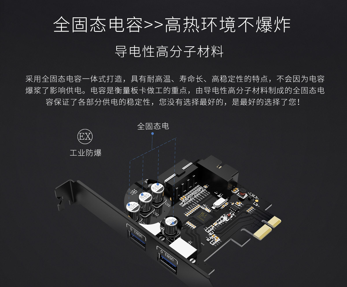 2口USB3.0 PCI-E扩展卡,全固态电容