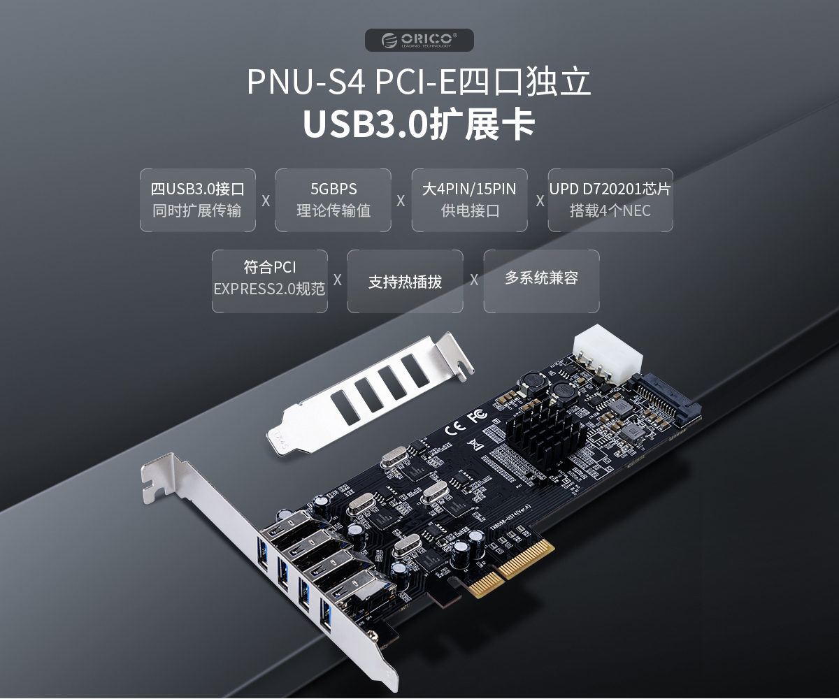 4口独立USB3.0扩展卡 不支持PCI卡槽