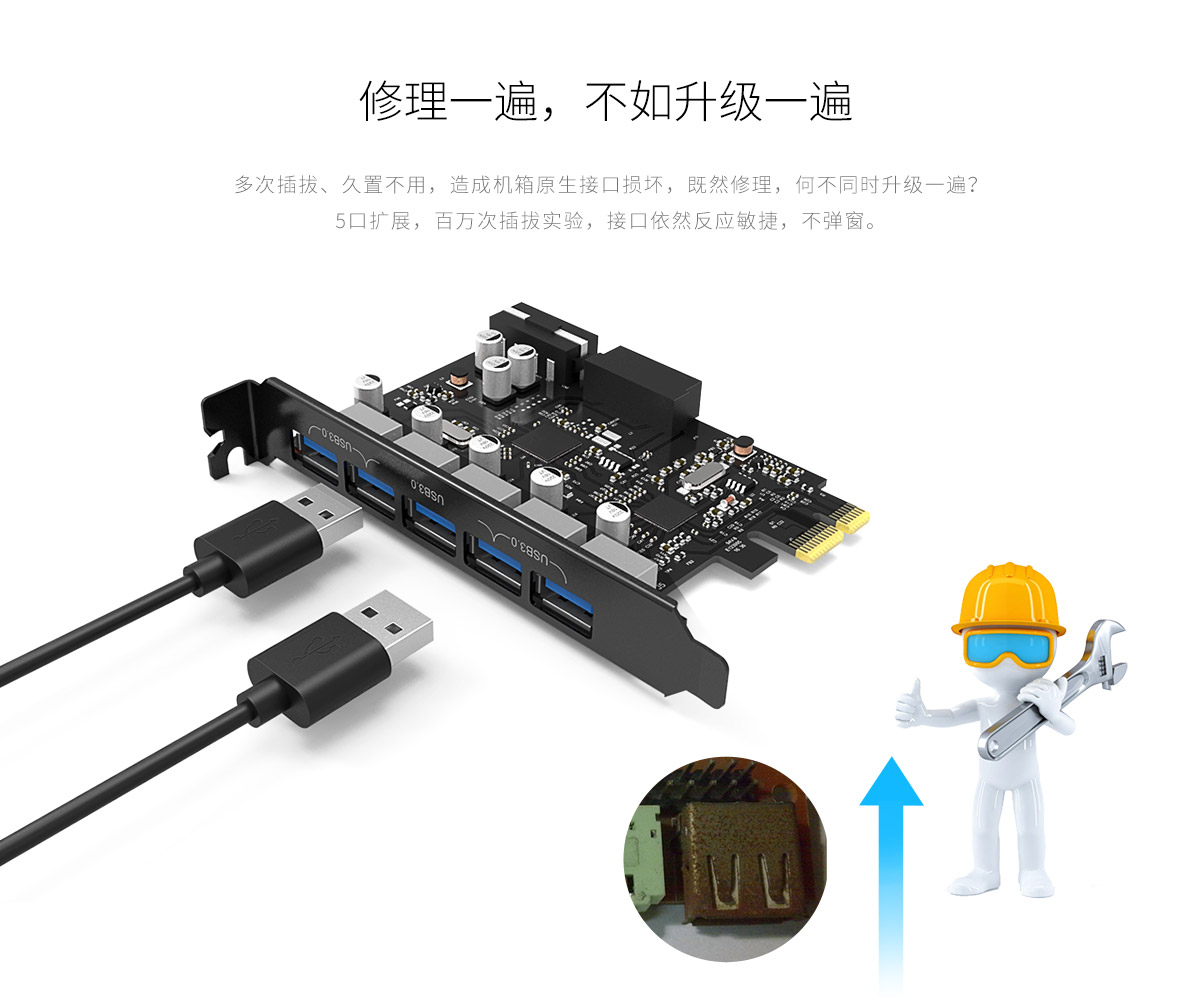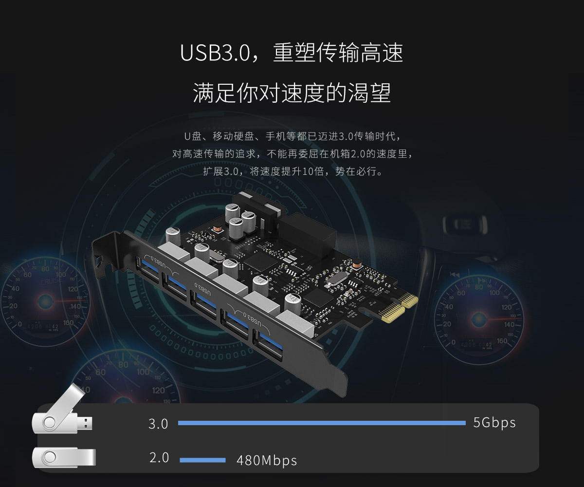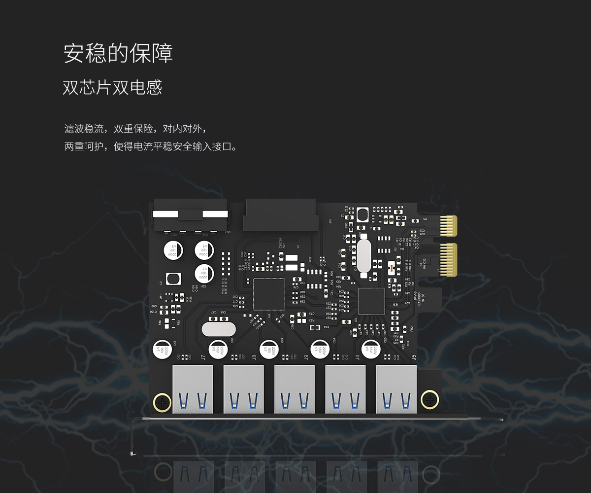 双芯片5口USB3.0 台式机PCI-E扩展卡