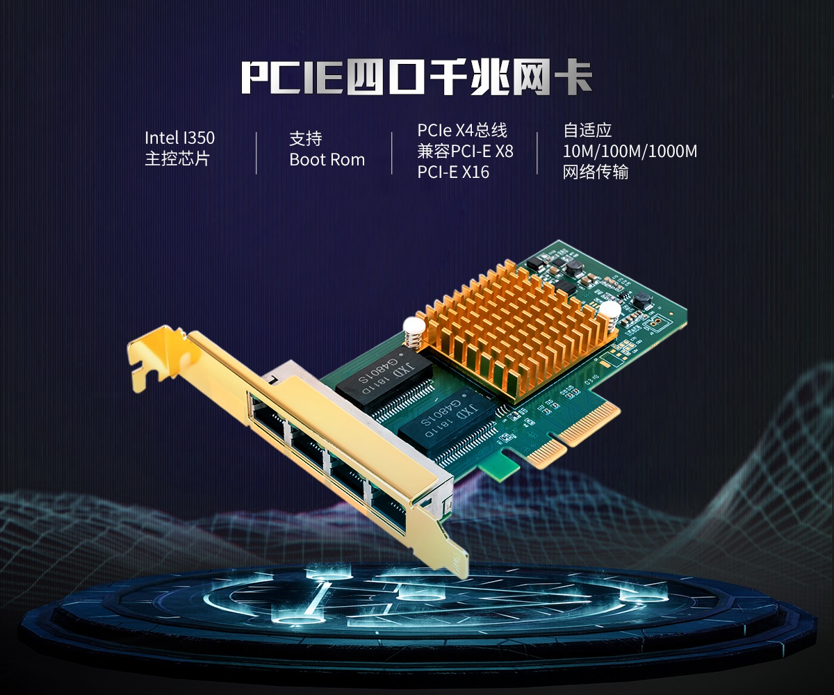 4口千兆网卡PCI-E扩展卡,PCI-E X4总线