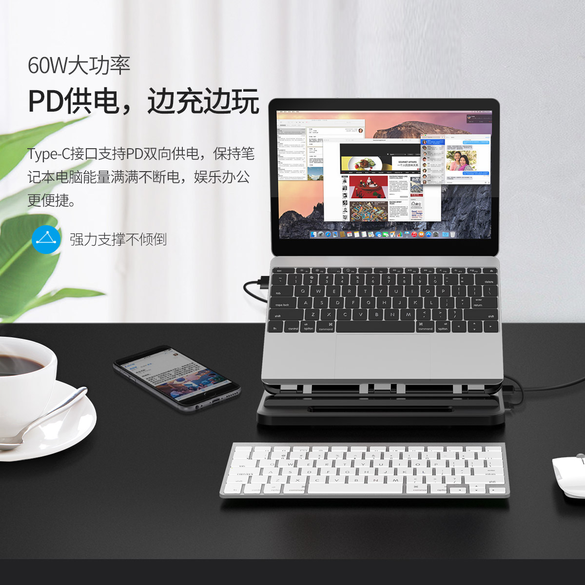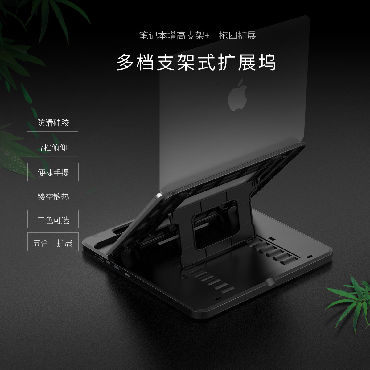 多档支架式 便捷手提 镂空散热 五合一扩展 三色可选 带支架功能