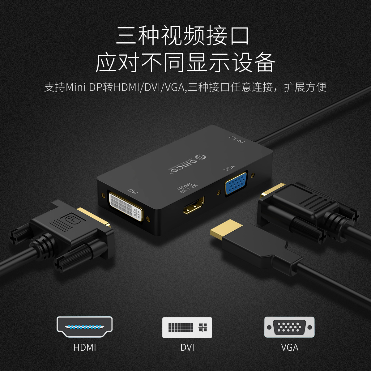 Mini DP转HDMI/DVI/VGA影音延长线转换器