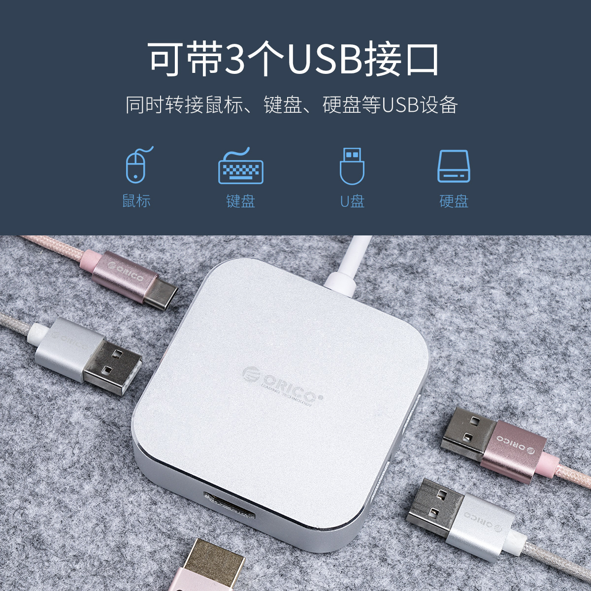 支持PD快充,usb高清传输,可带3个USB接口,独立式芯片方案