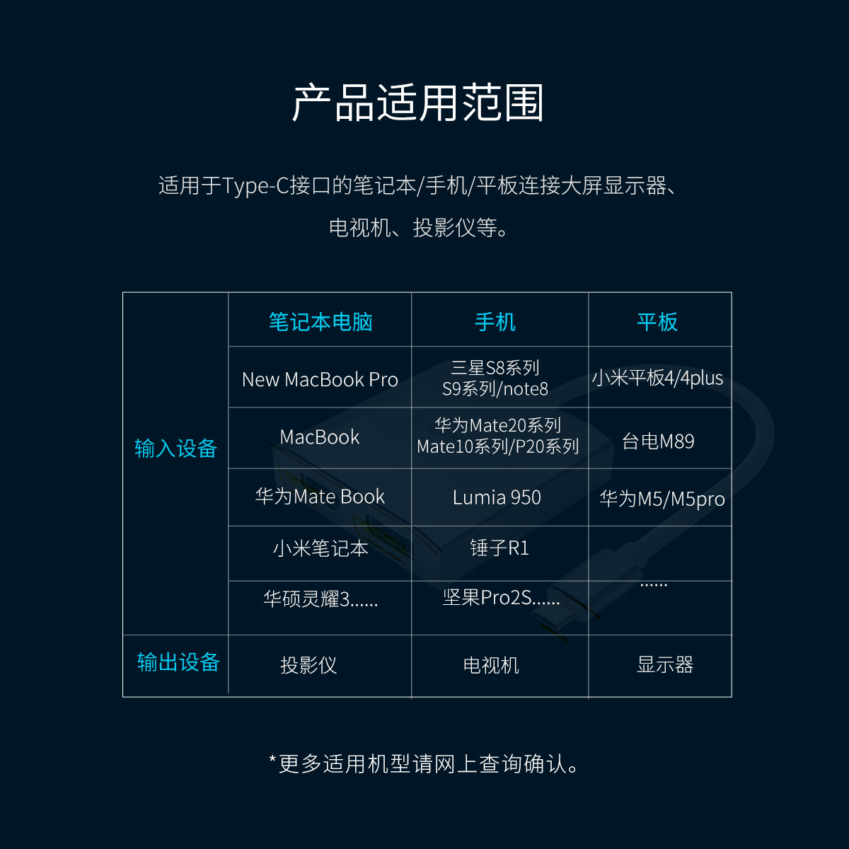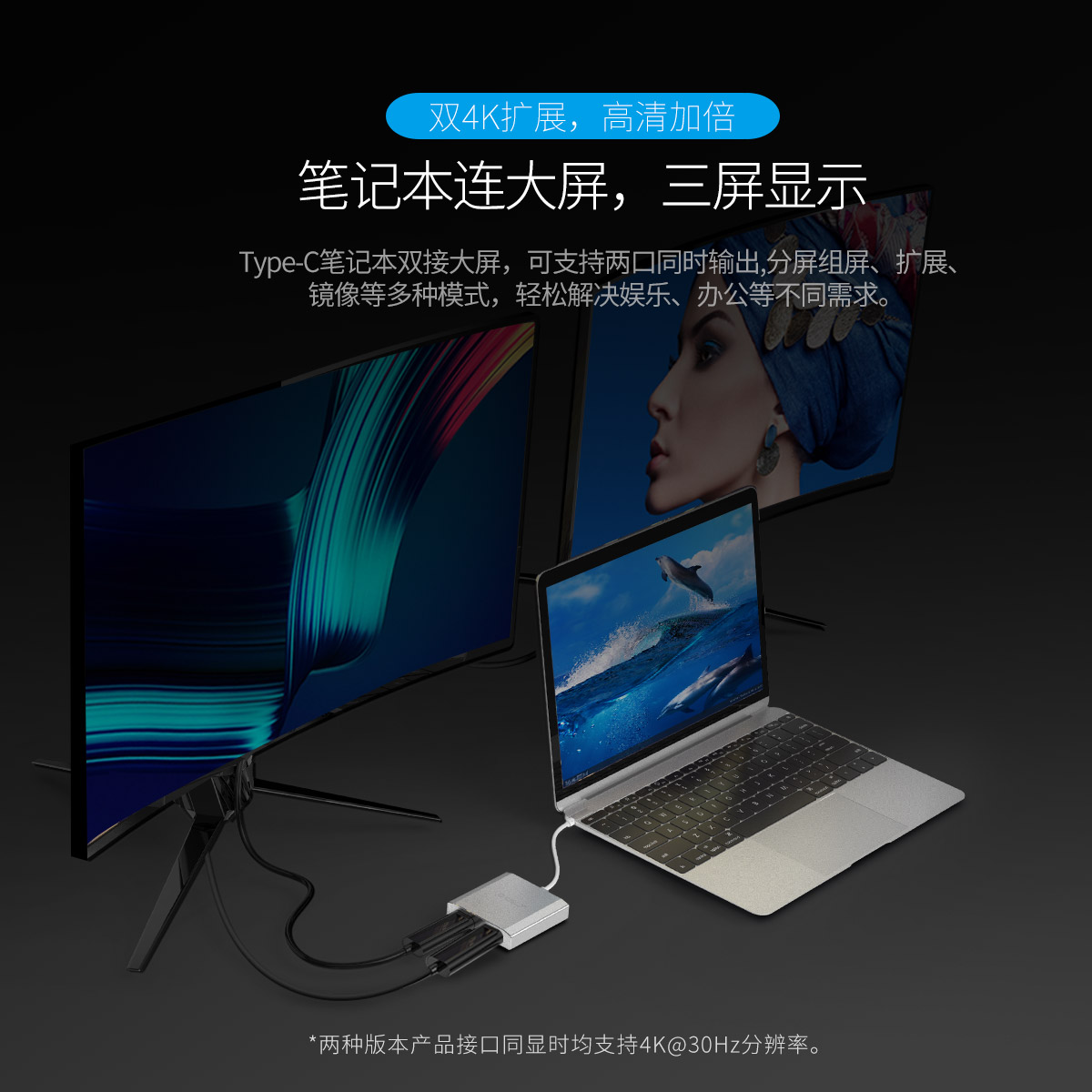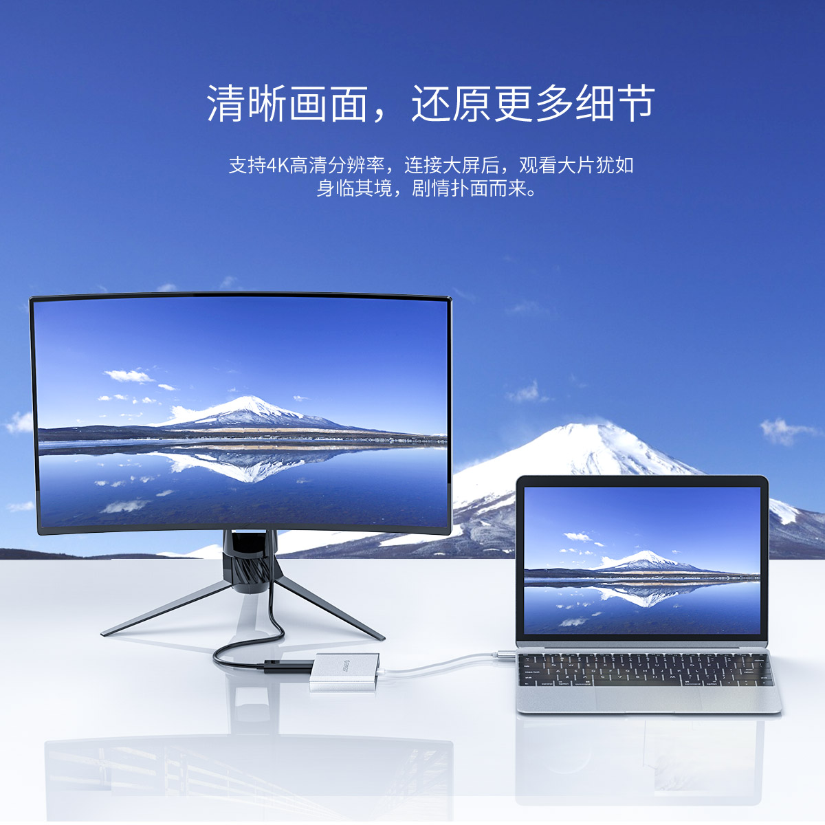 4K画质,音视频同步输出,扩展大屏,多设备可用