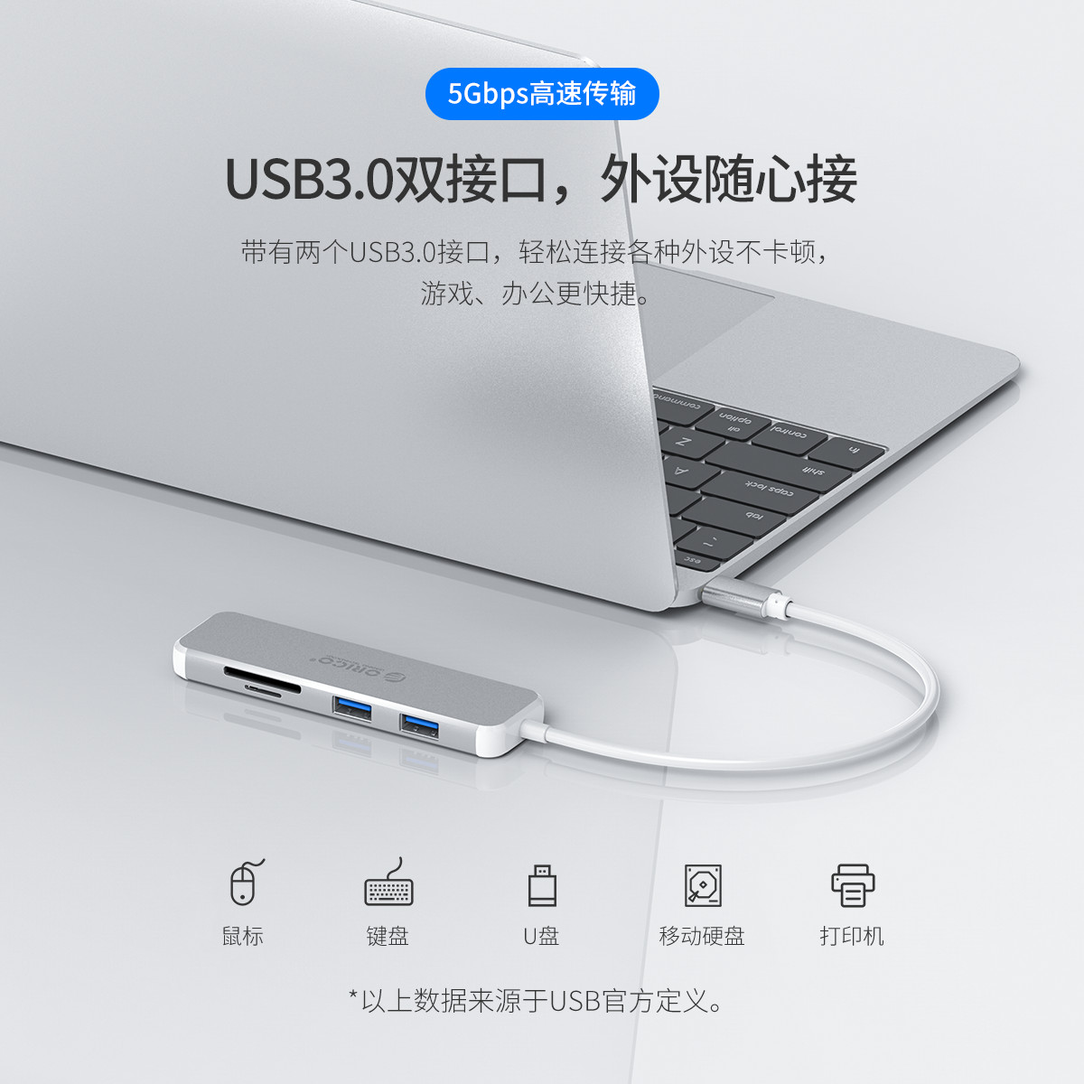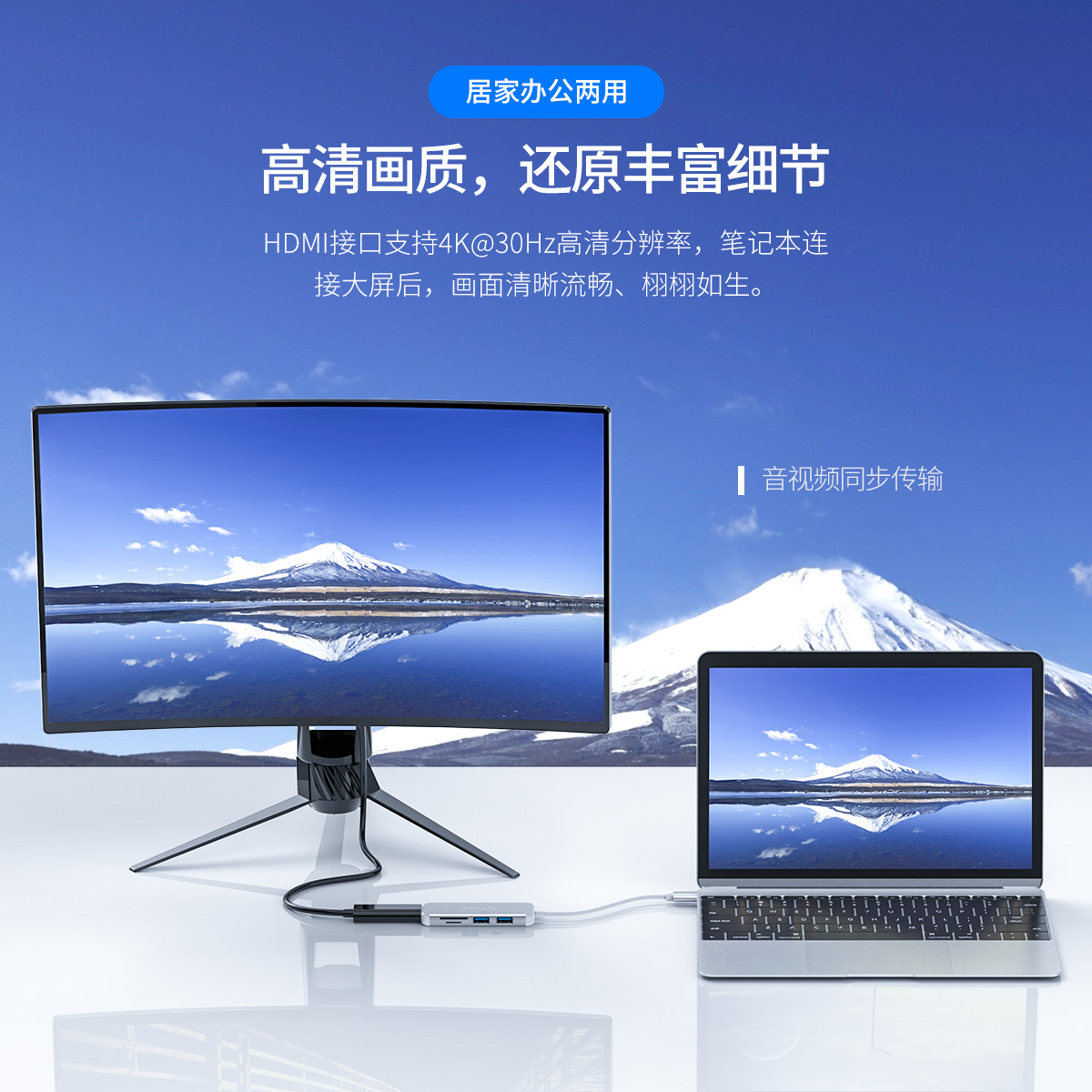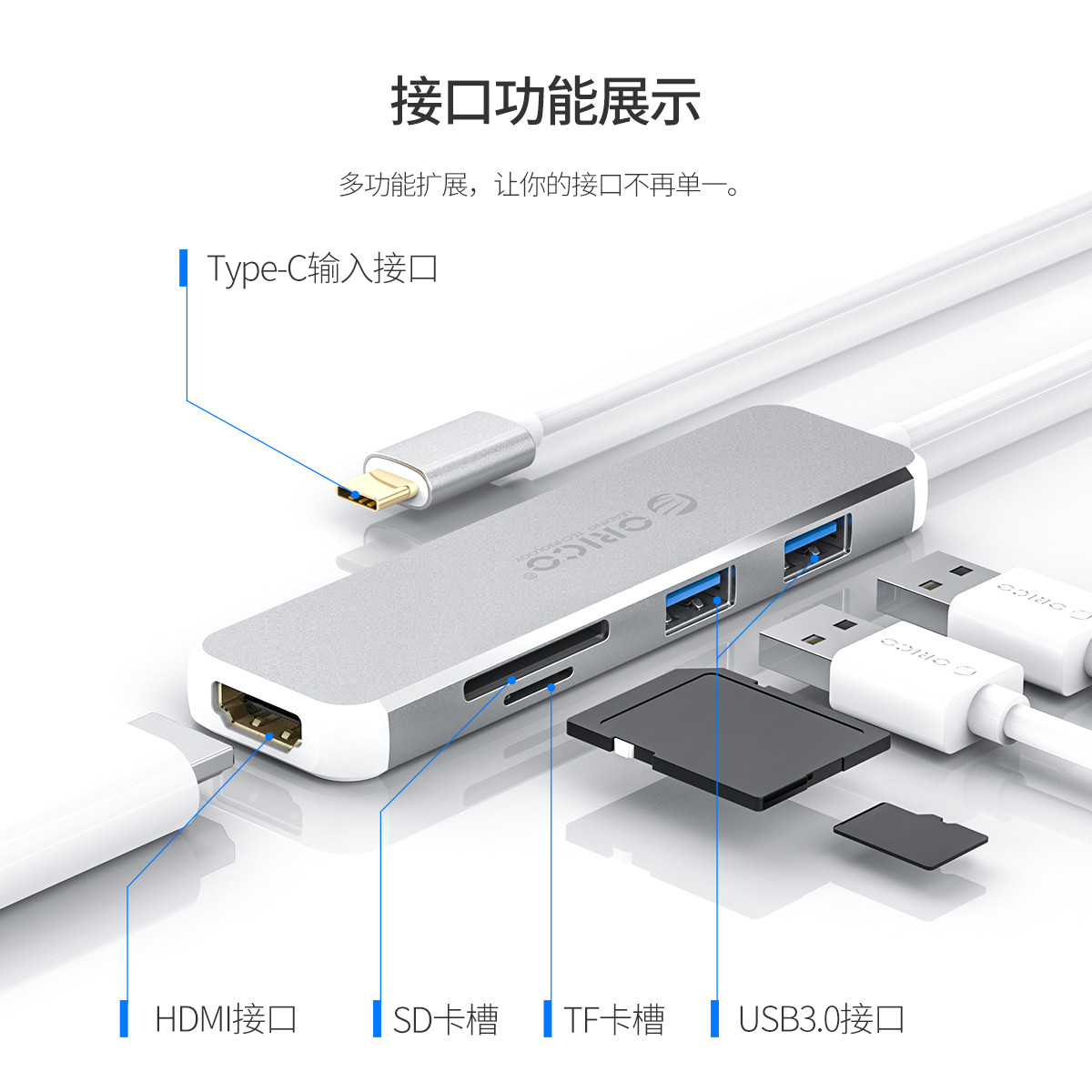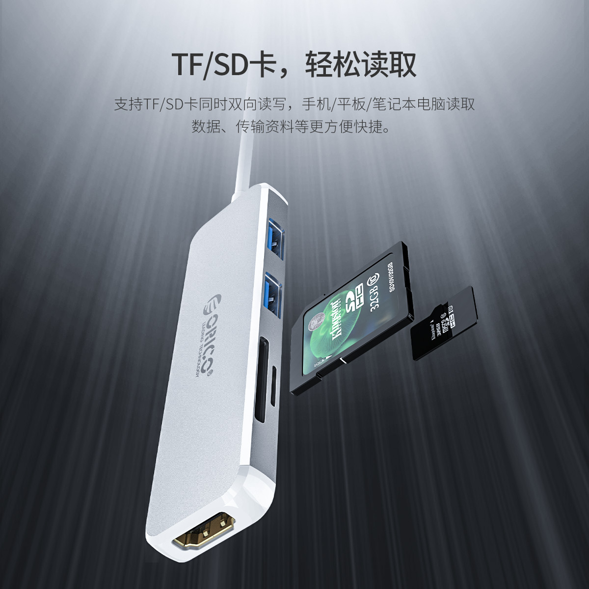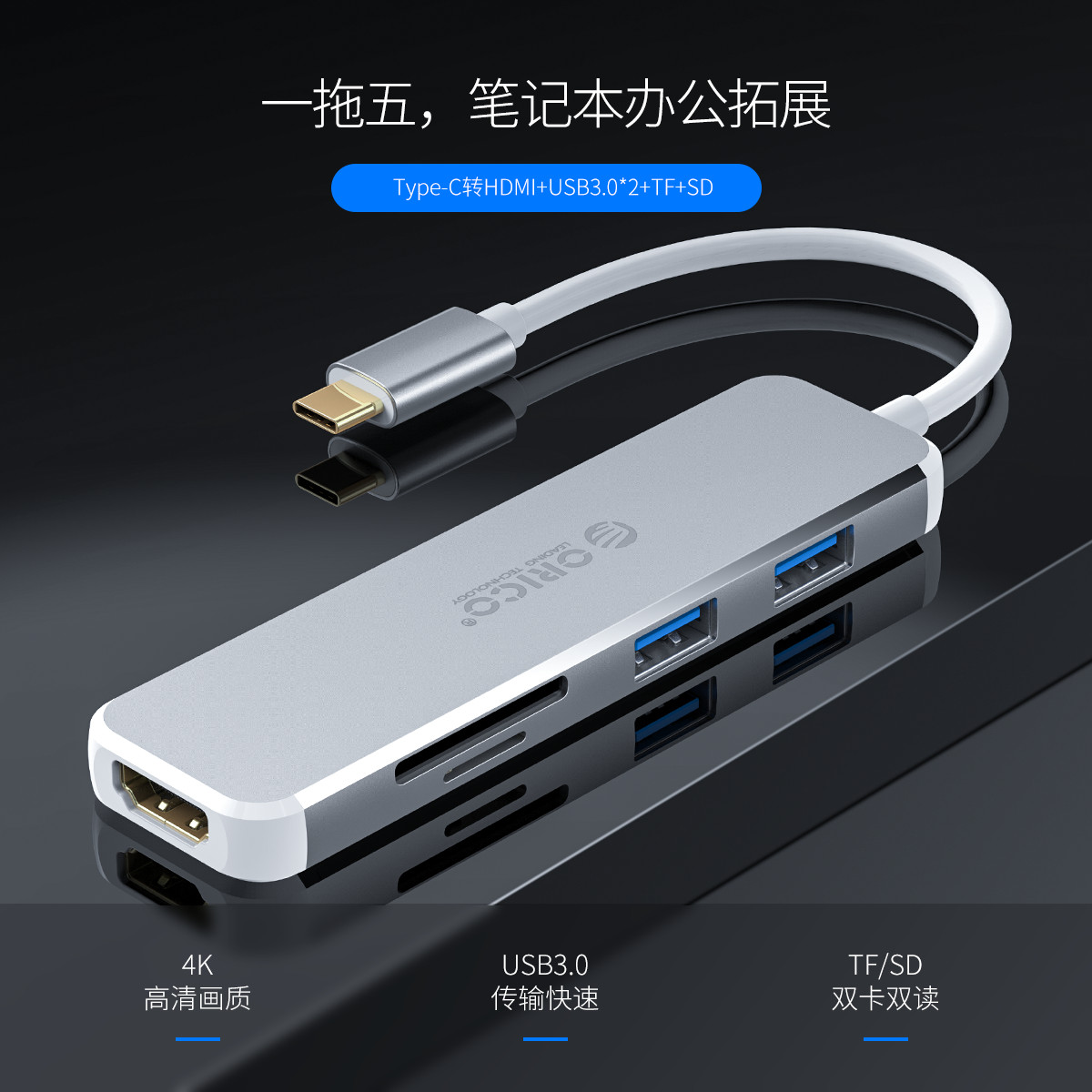 Type-C转HDMI+USB3.0*2+TF+SD多功能扩展坞