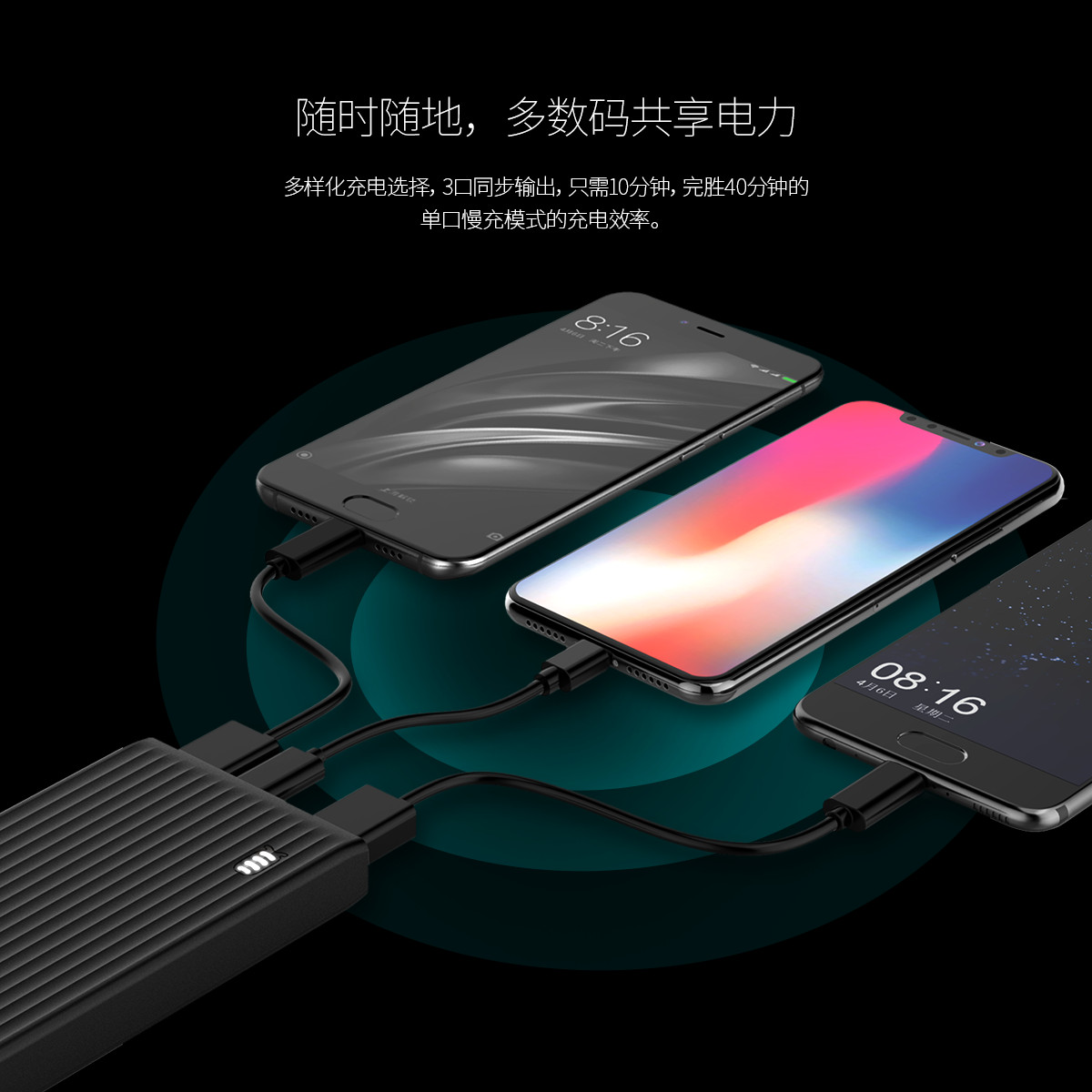 双输入三输出接口,18W大功率输出,聚合物电芯更安全