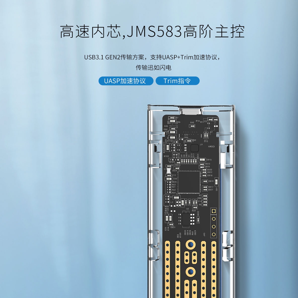 NVMEM.2转Type-C,10Gbps高速传输,TRIM+UASP双加速协议,全透明+多彩铝合金外观设计,8TB大扩容