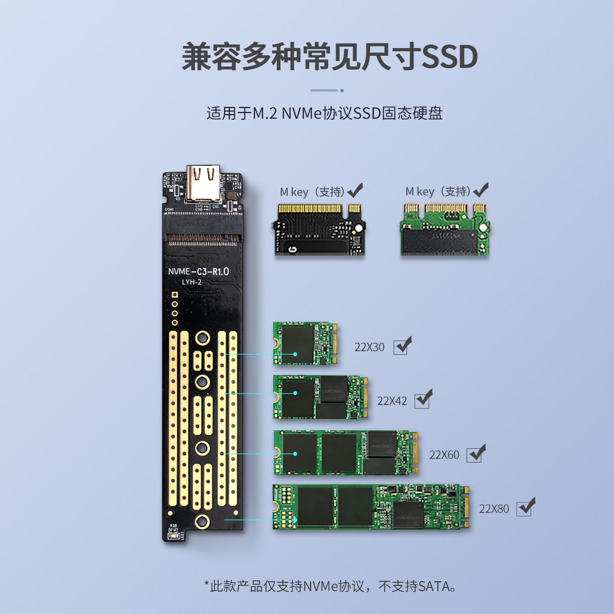 M.2 SSD移动硬盘兼容多种常见尺寸SSD固态硬盘,秒传1G