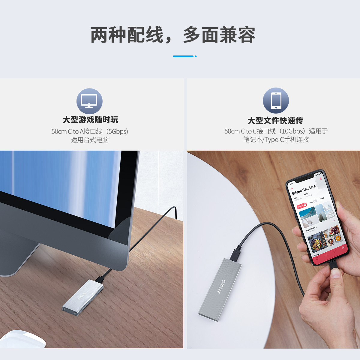 M.2 SSD移动硬盘兼容多种常见尺寸SSD固态硬盘,采用高阶主控芯片,快速传输,小巧而又薄,2TB大容量