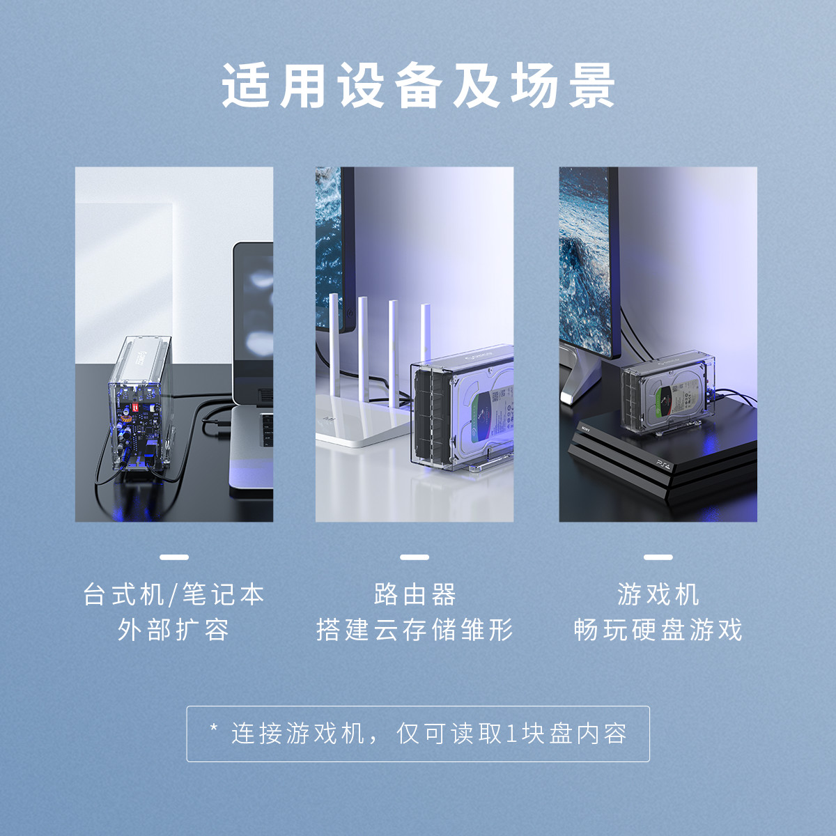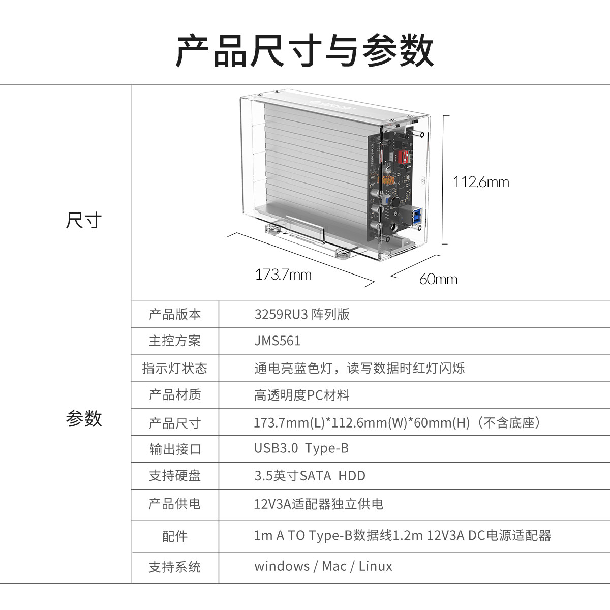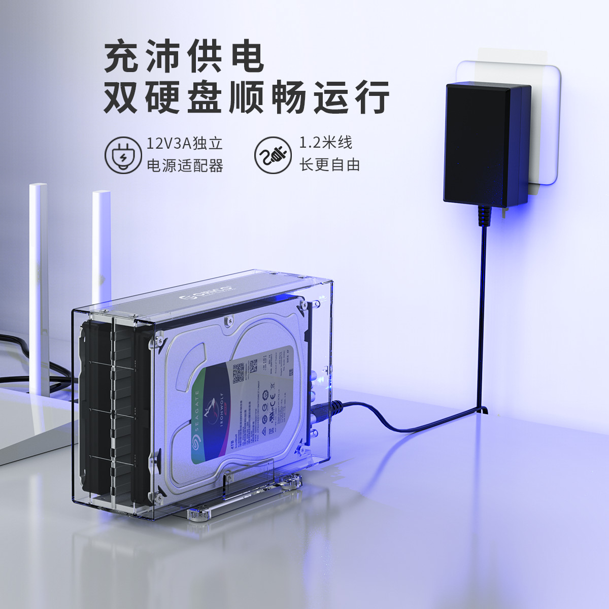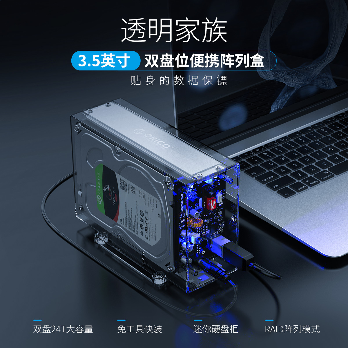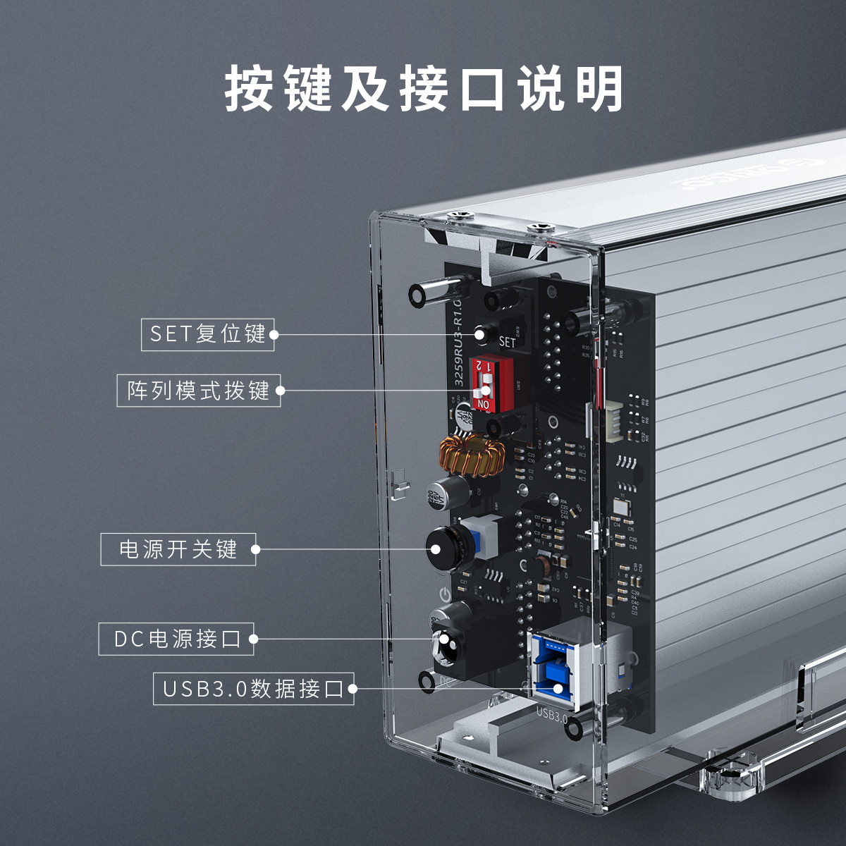 透明家族3.5英寸USB3.0双盘位便携硬盘盒