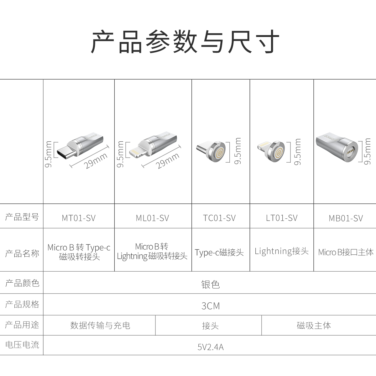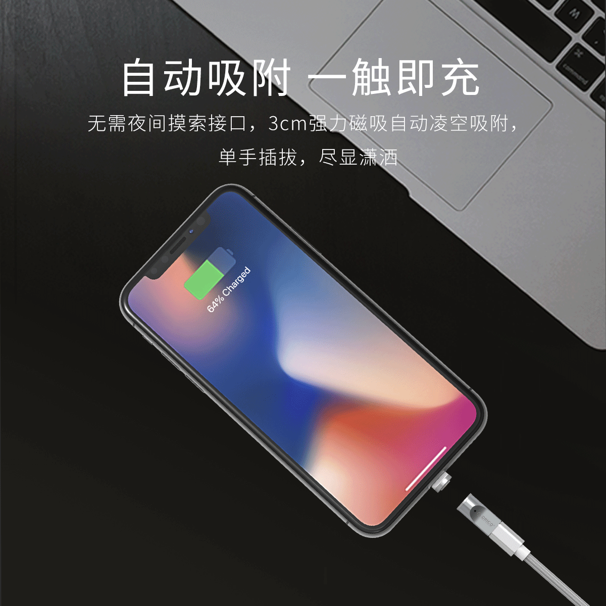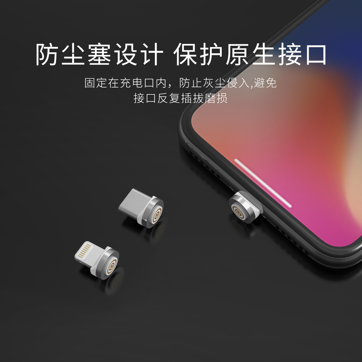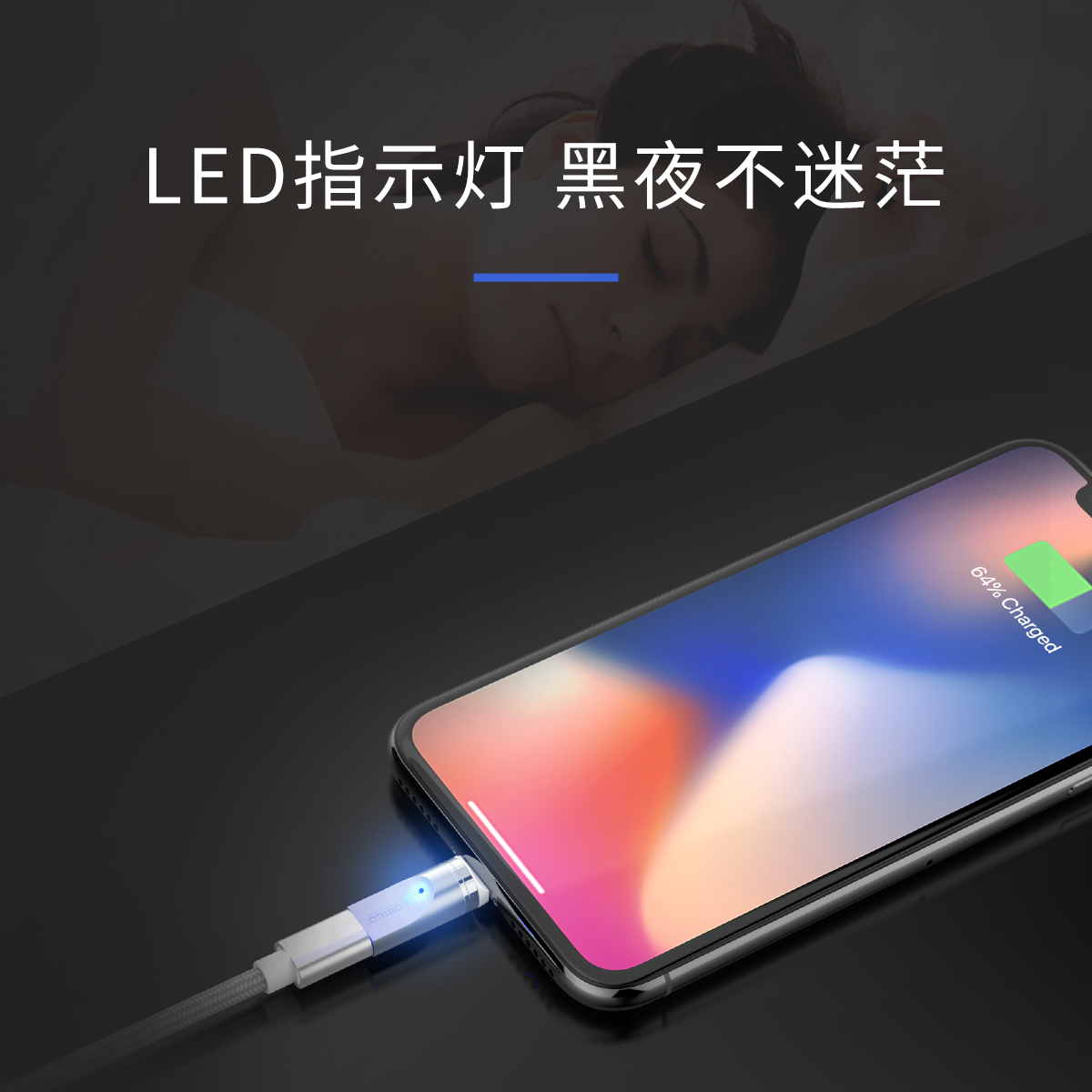 适配双接口,一秒磁吸,快速充电,360度可转动插拔,充电稳定,LED指示灯