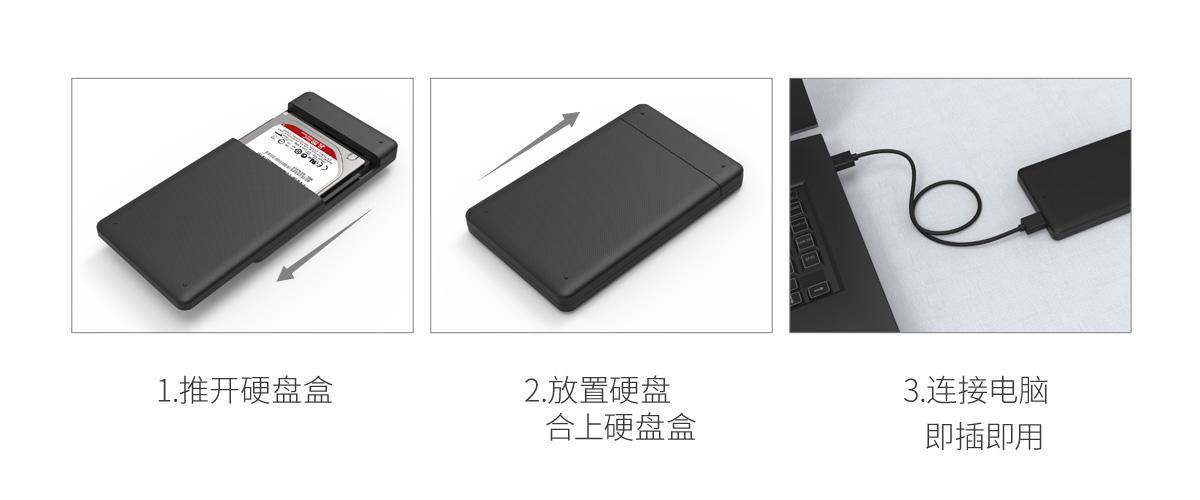 支持移硬盘9.5mm以下的2.5英寸SATA串口机械硬盘或SSD固态硬盘,兼容windows 系统/MAC 9.1/10.2及以上。