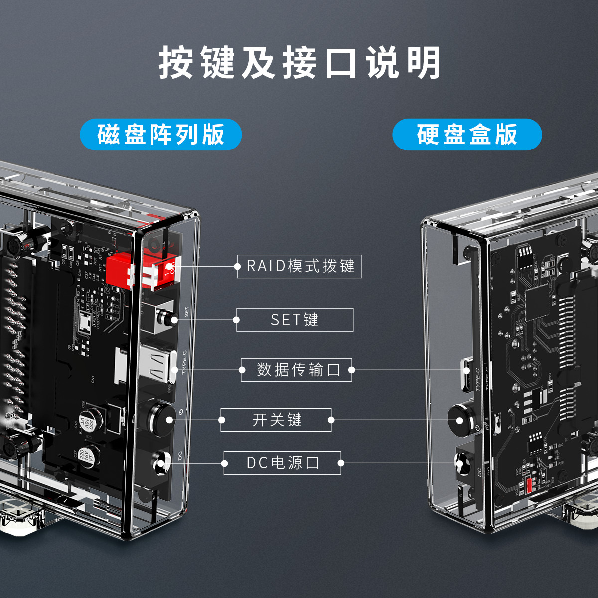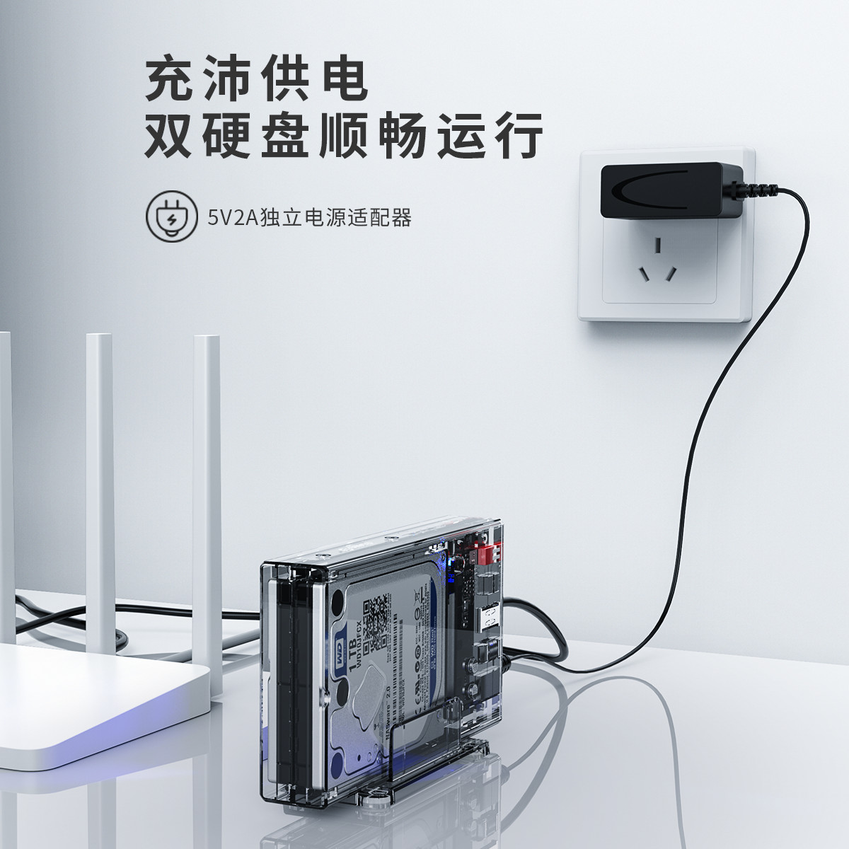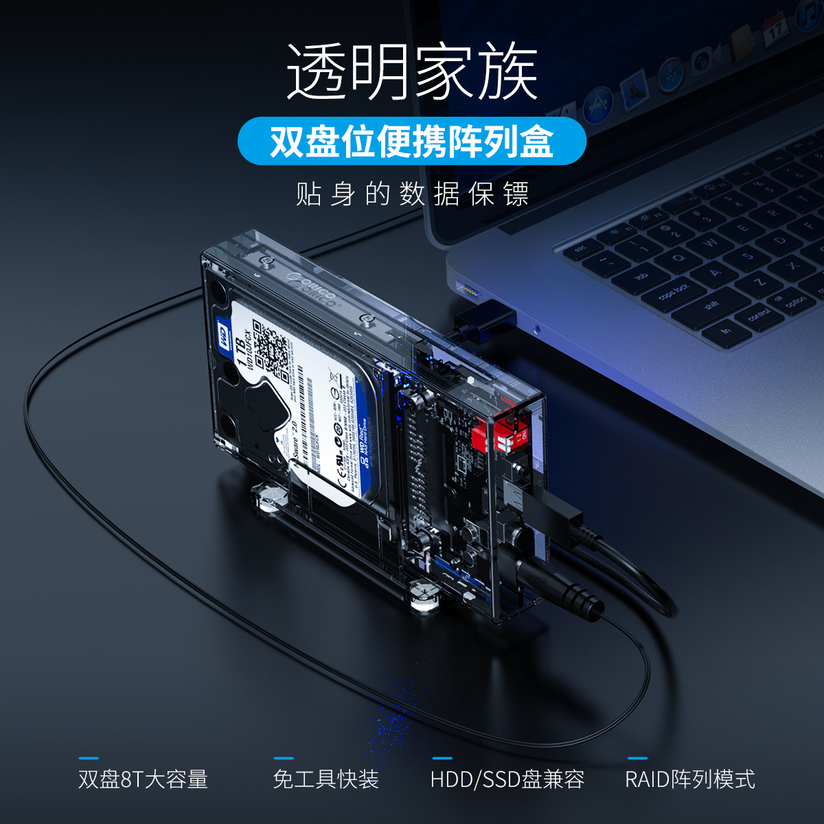 2.5寸双盘位阵列硬盘盒,双盘8T大容量,免工具快装,RAID阵列模式