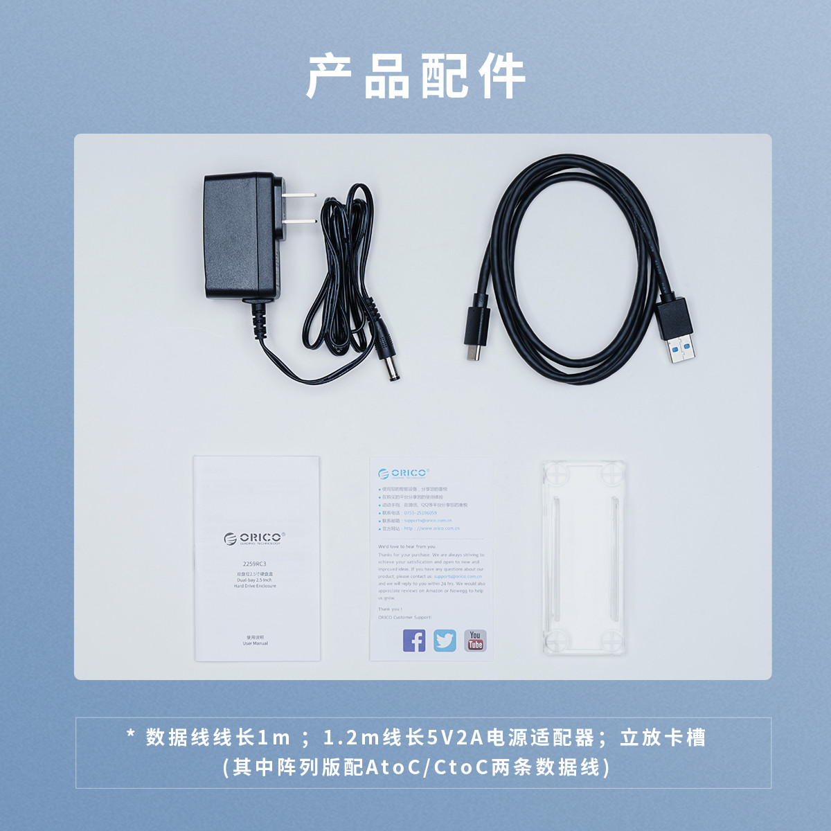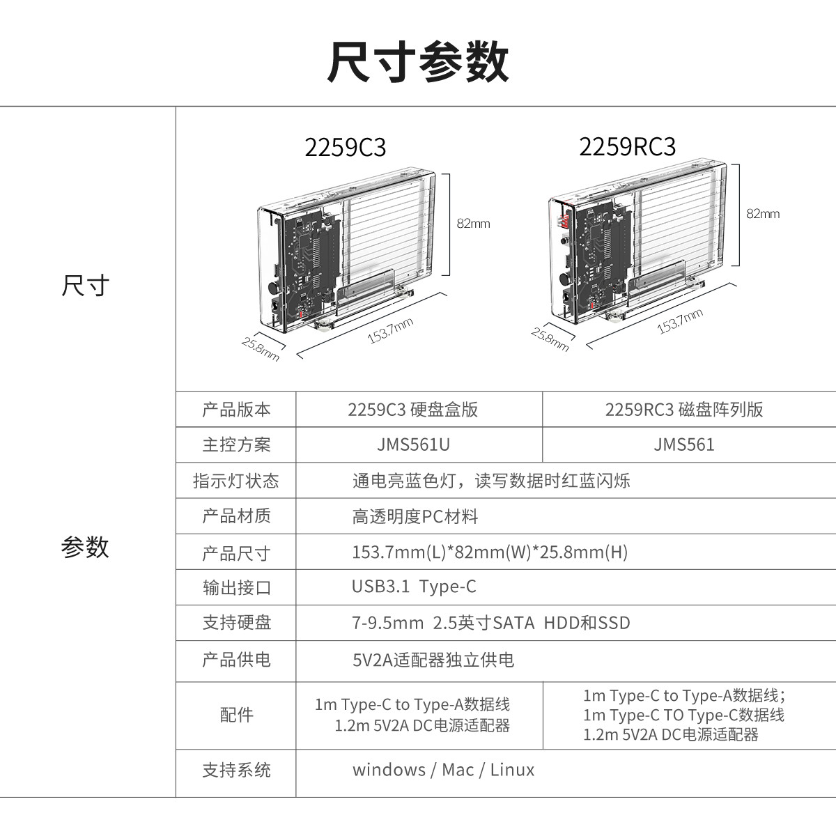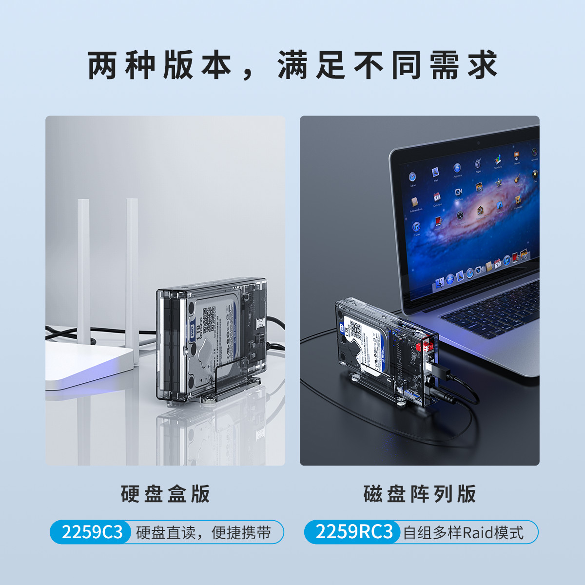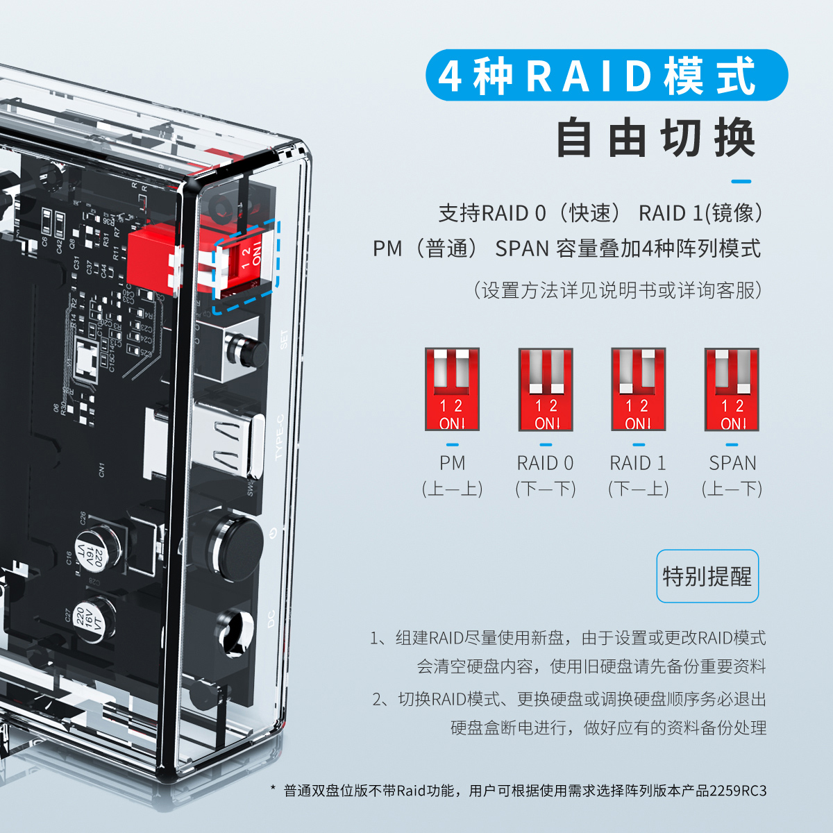 2.5寸双盘位阵列硬盘盒,双盘8T大容量,免工具快装,RAID阵列模式