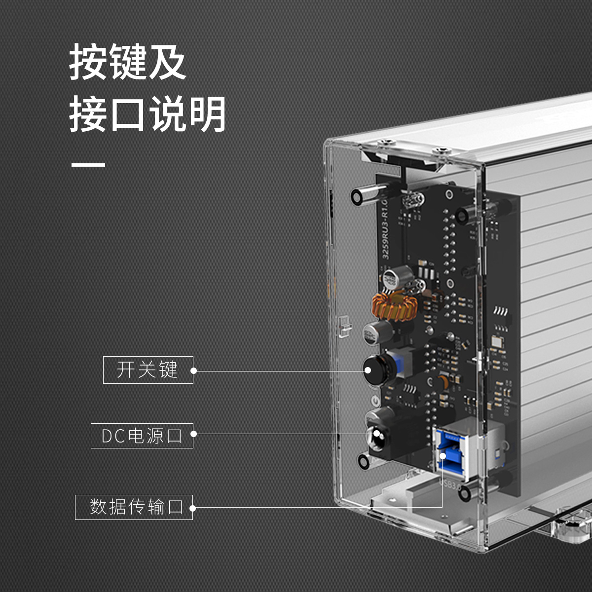 3.5英寸双盘位USB3.0透明硬盘盒