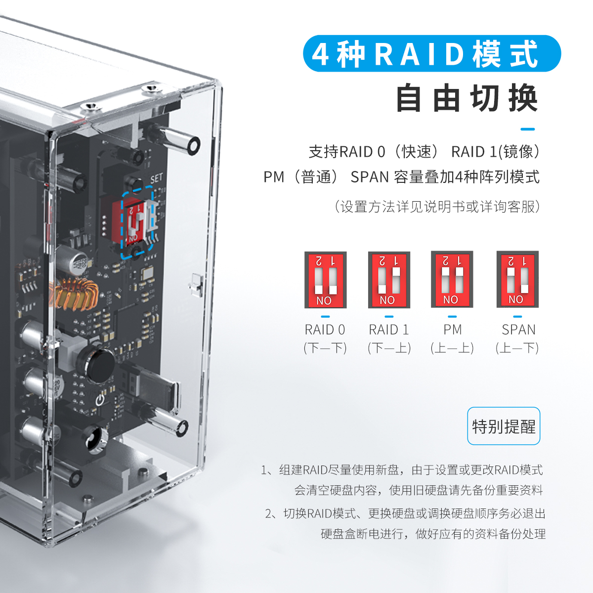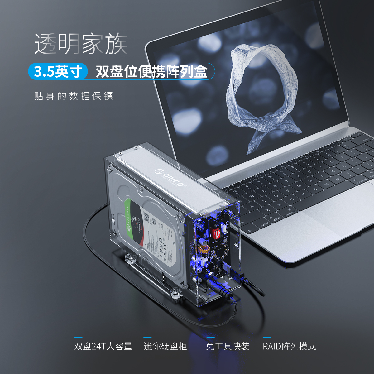 双盘24T大容量,迷你硬盘柜,免工具快装,RAID阵列模式