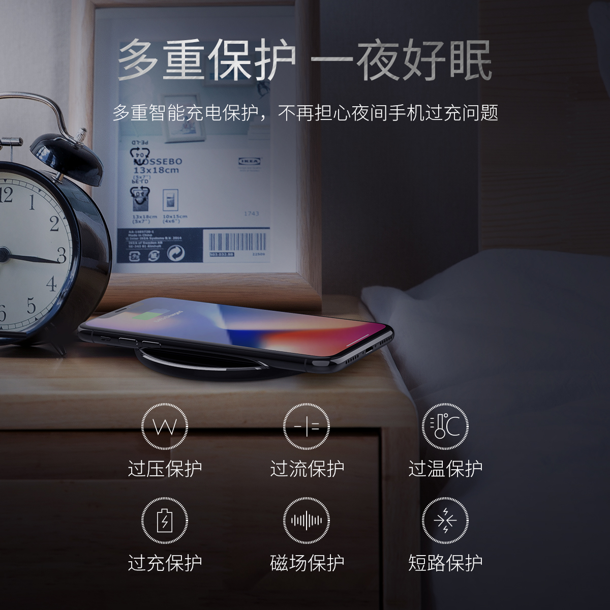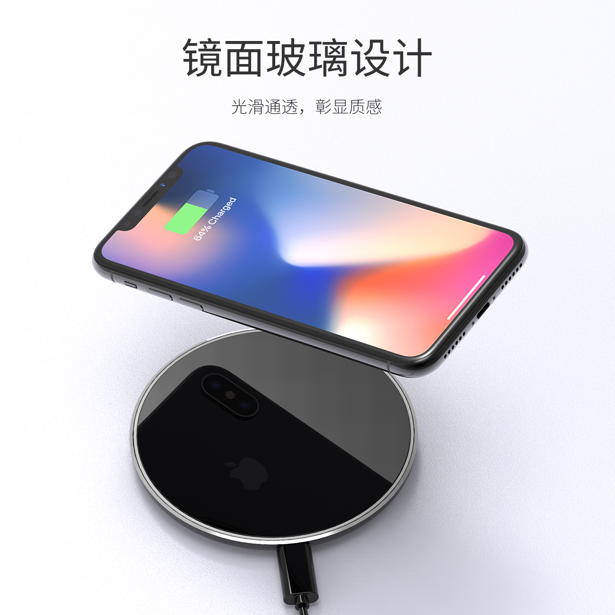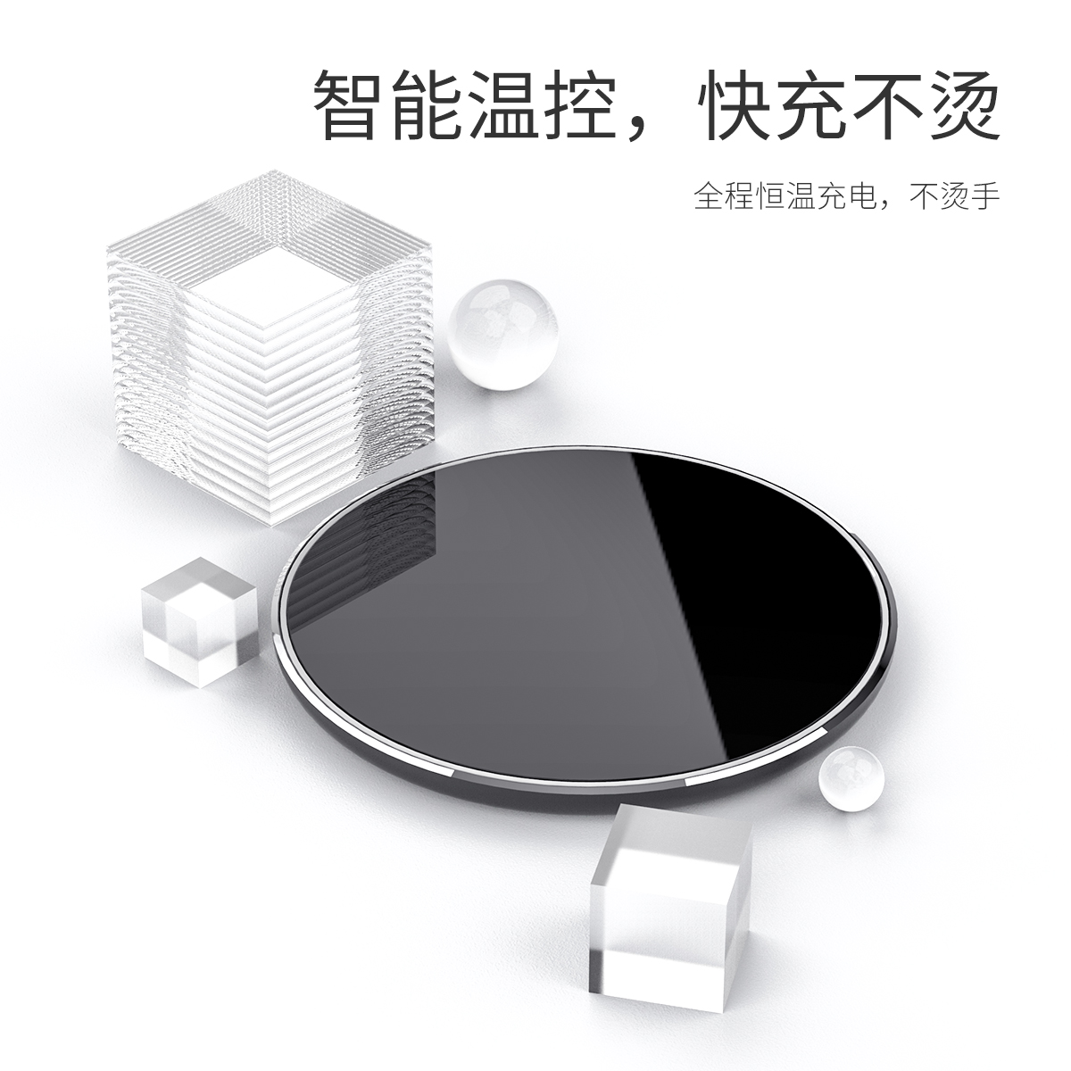 10W无线快充,支持3种快充模式,镜面玻璃设计,大线圈,8mm感应,智能温控,多重保护,7mm厚度