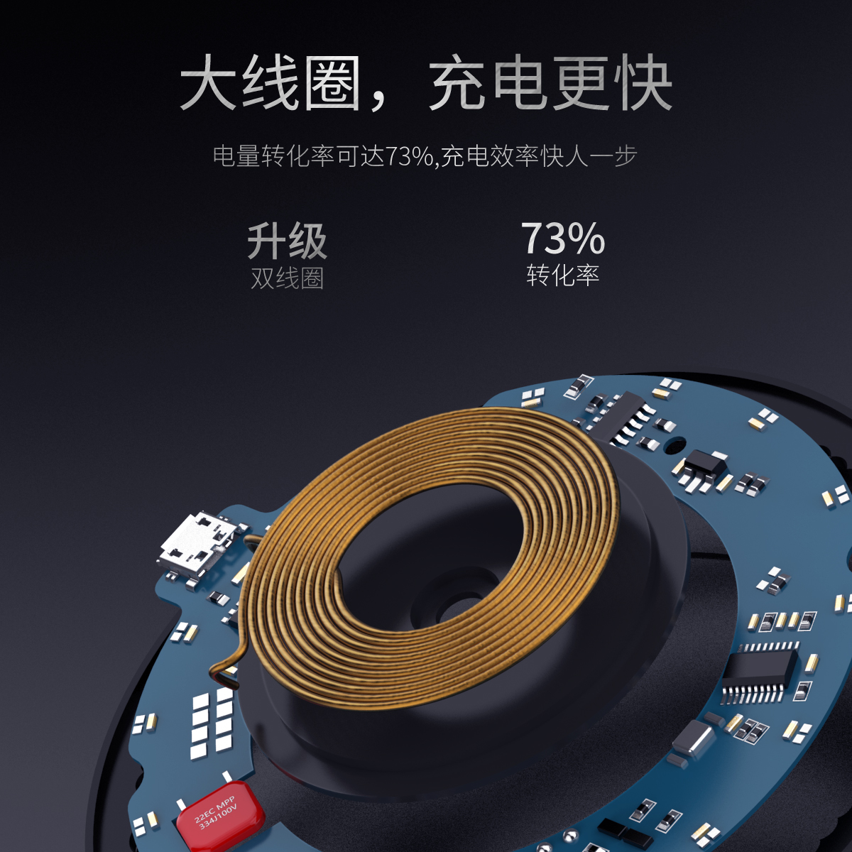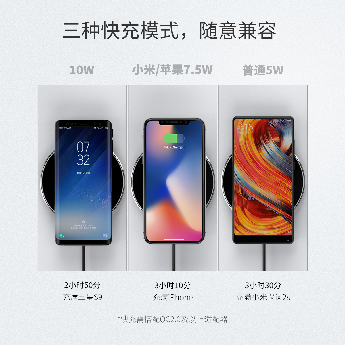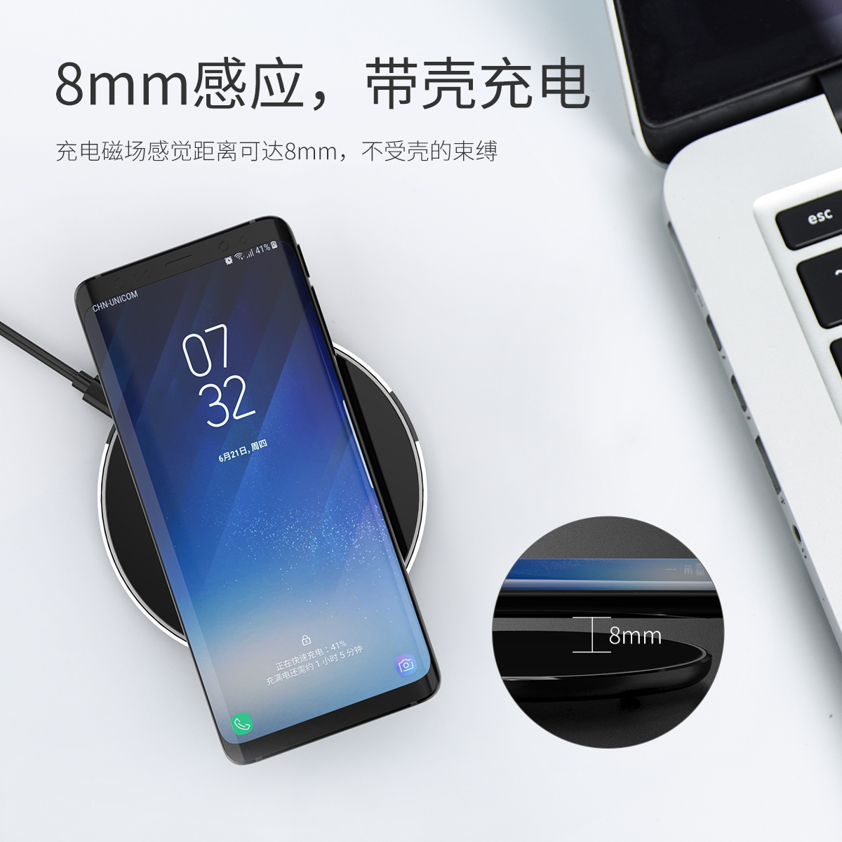 10W无线快充,支持3种快充模式,镜面玻璃设计,大线圈,8mm感应,智能温控,多重保护,7mm厚度