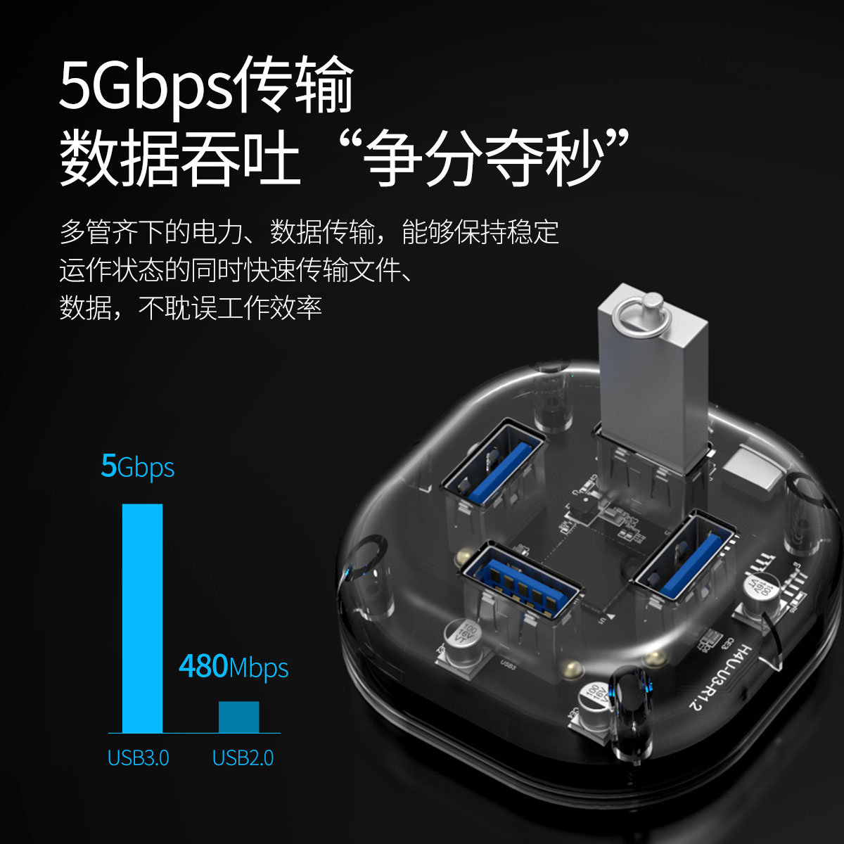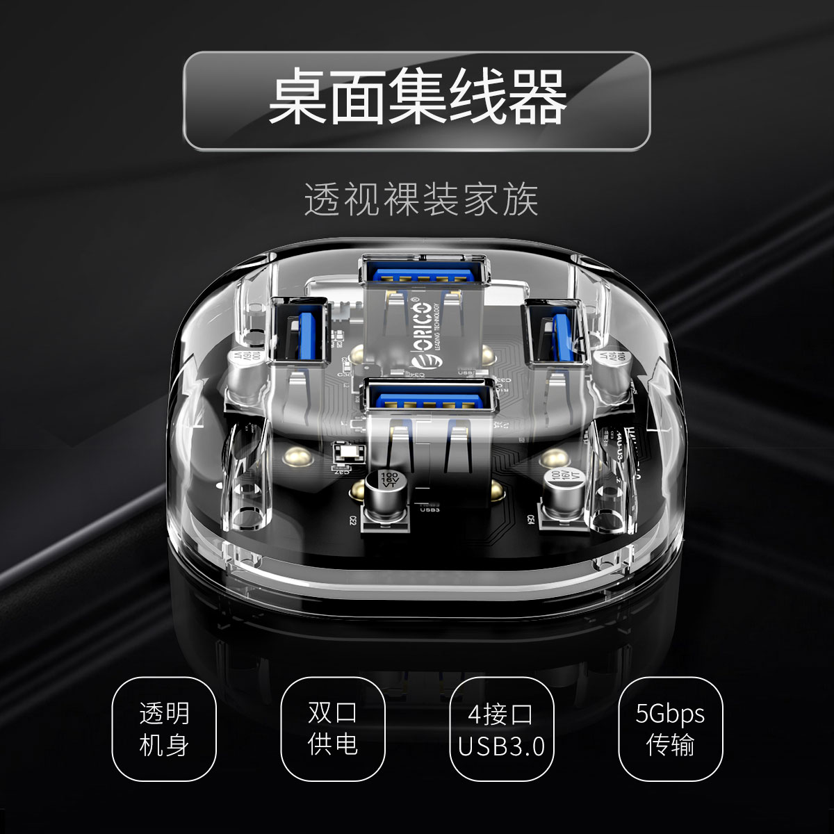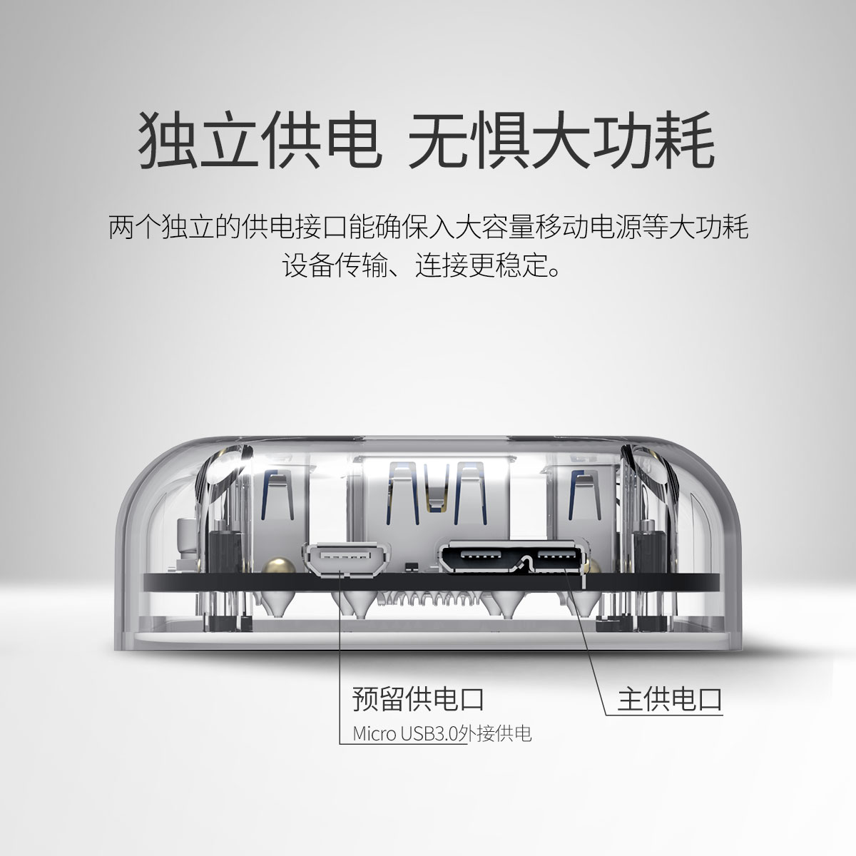 透明外壳,四口USB 3.0扩展所需,5Gbps疾速传输,独立供电口,VL817主控