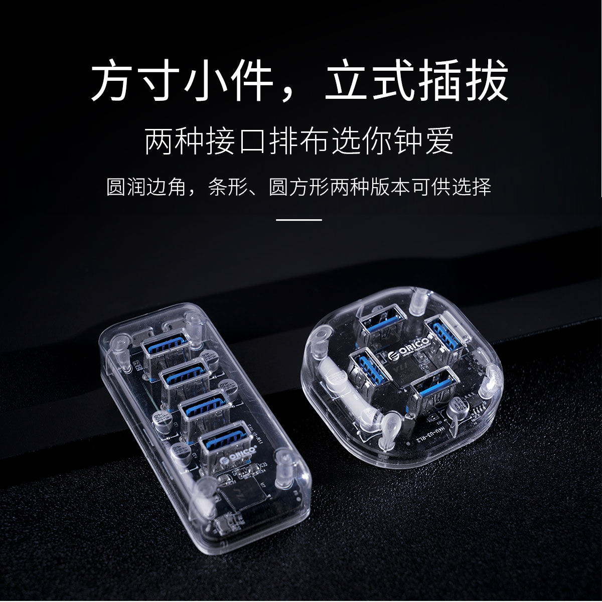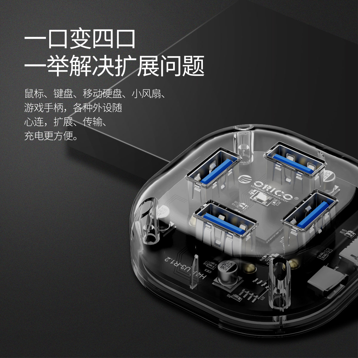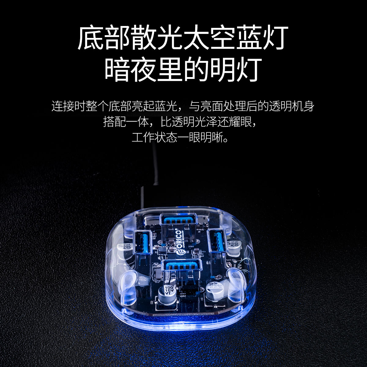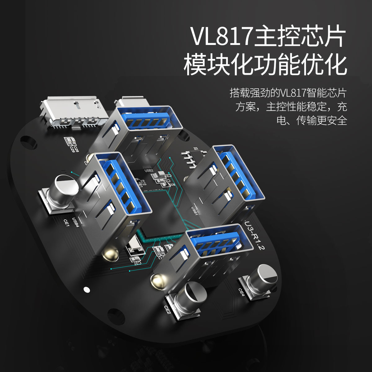 透明外壳,四口USB 3.0扩展所需,5Gbps疾速传输,独立供电口,VL817主控