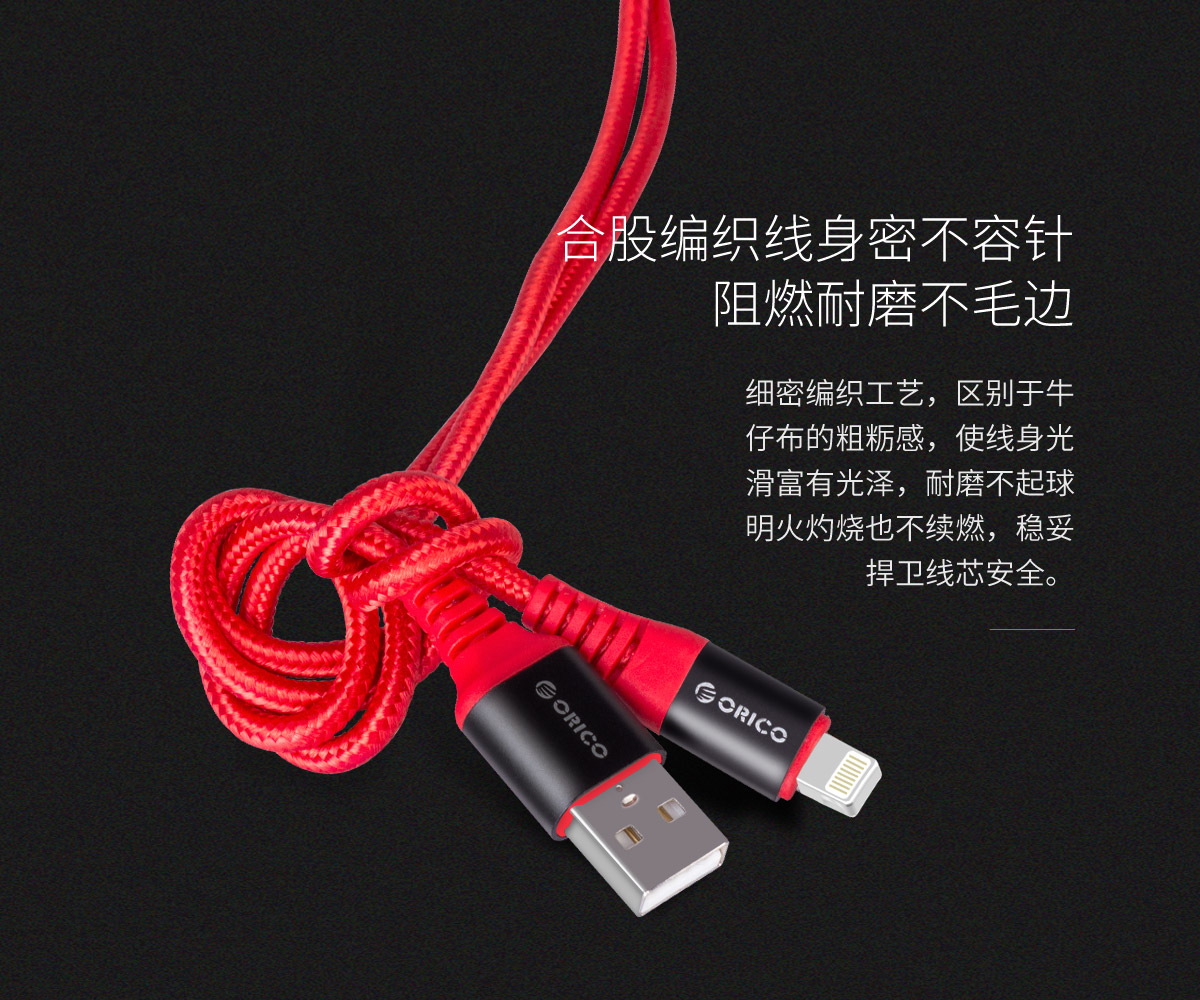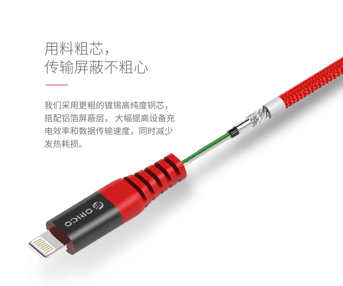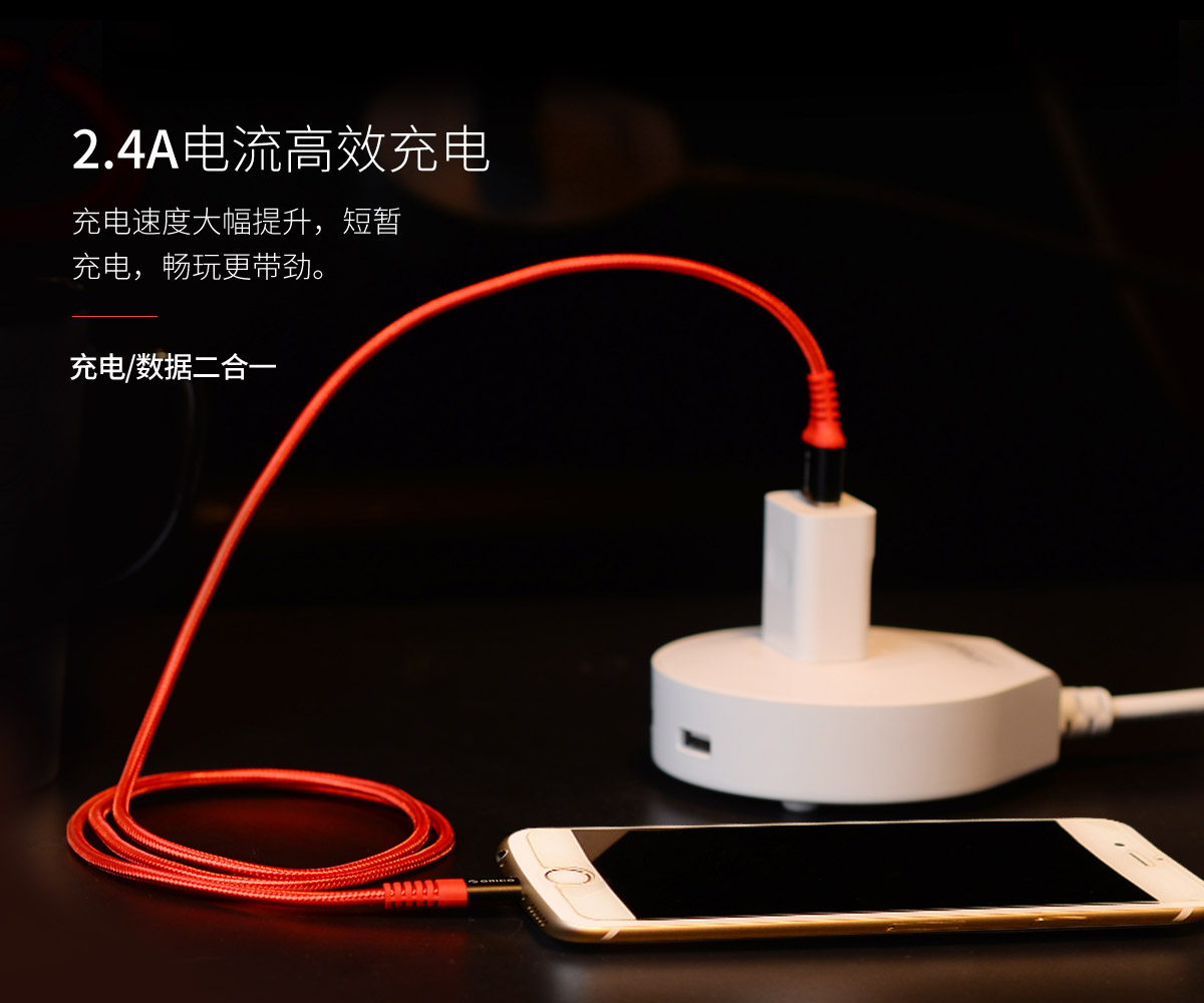 红色芳纶纤维编织,2.4A大电流,镀镍不锈钢插头,粗镀锡高纯度铜芯