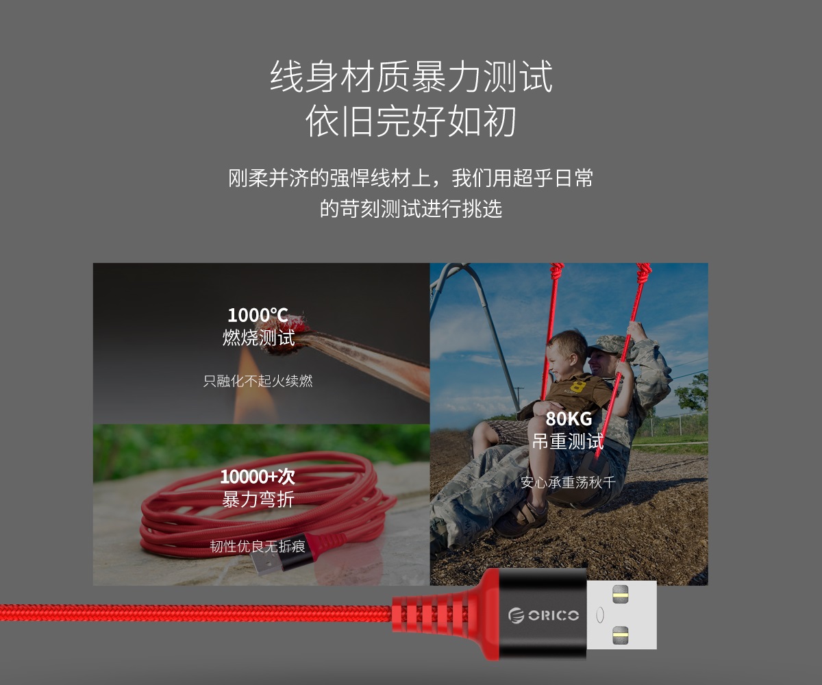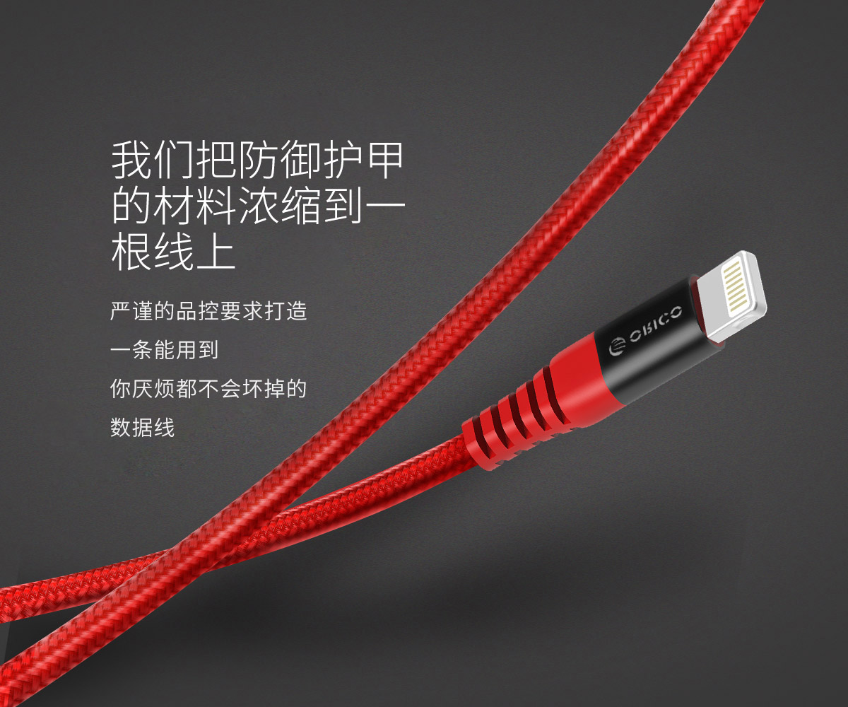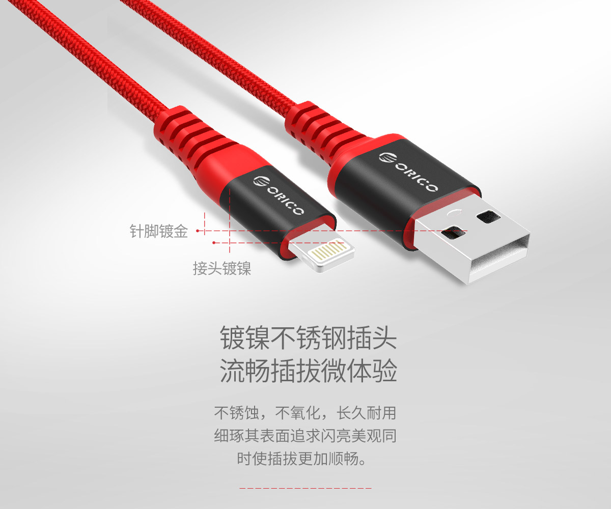 红色芳纶纤维编织,2.4A大电流,镀镍不锈钢插头,粗镀锡高纯度铜芯