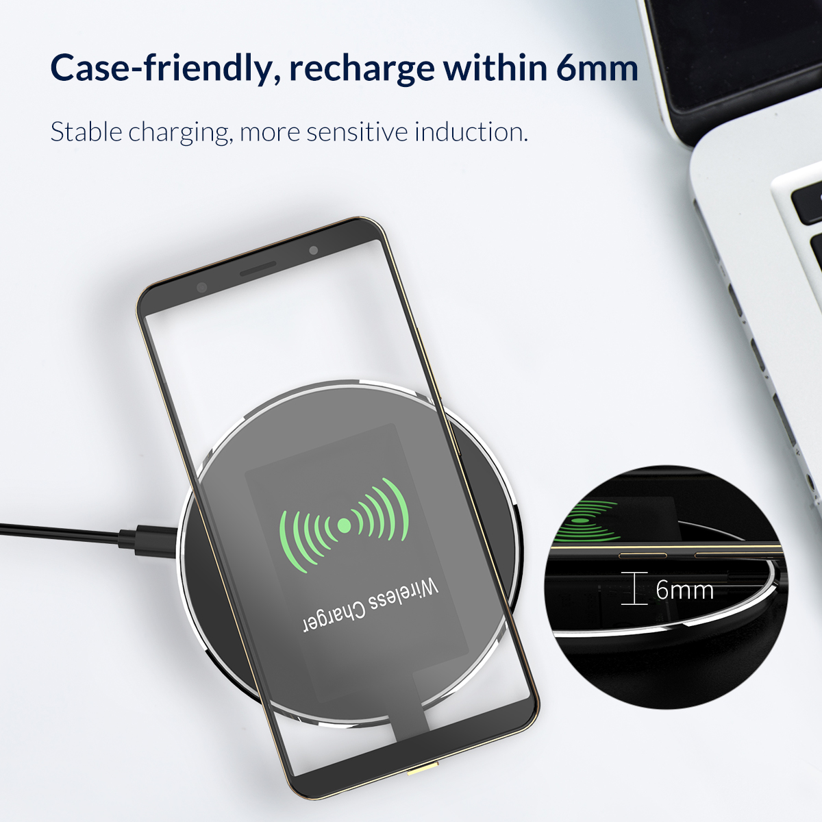 即放即充,采用纯铜大线圈,充电更效率,6mm感应效距离,感应更灵敏,支持智能充电