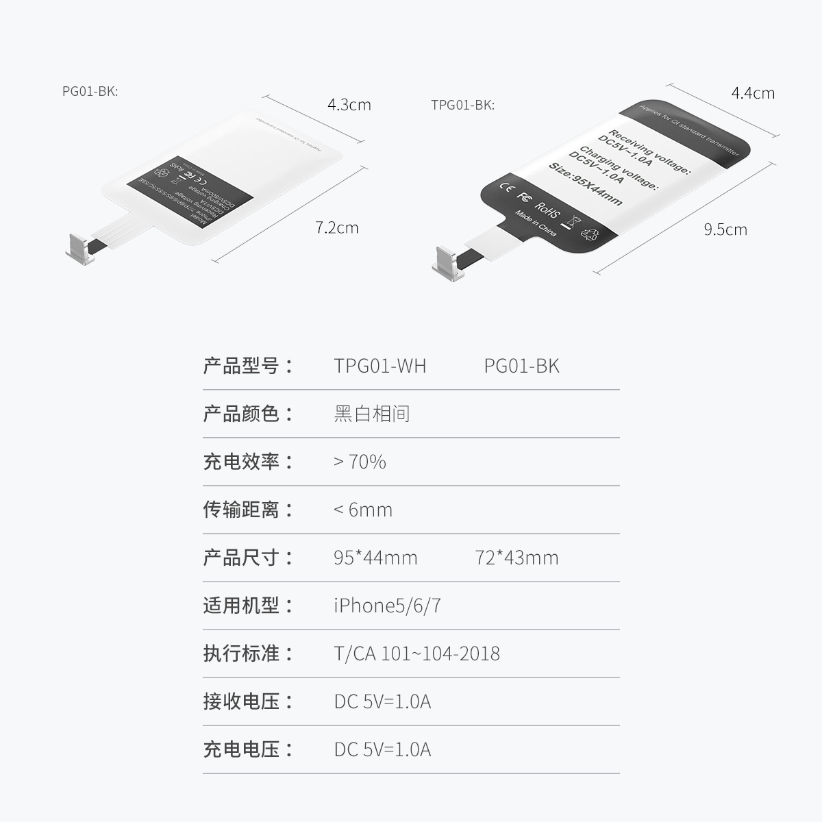 苹果手机lightning接口无线充接收器(95*44mm黑白相间)