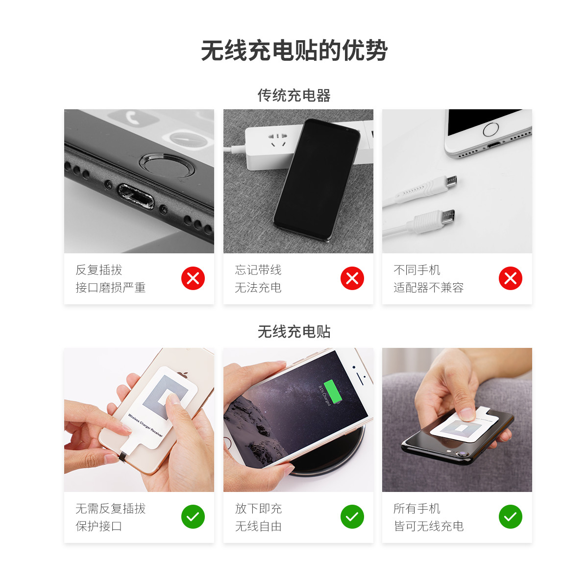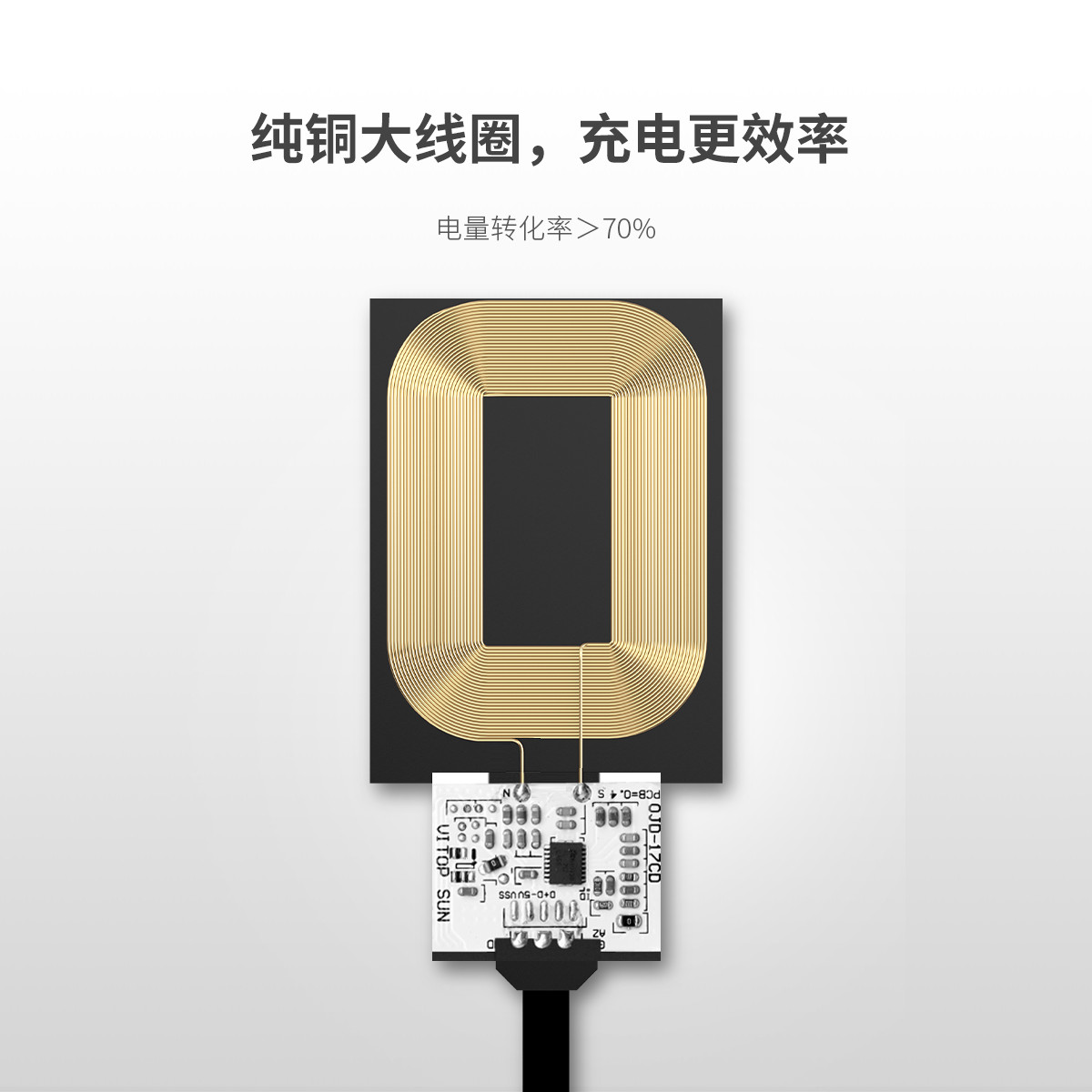 即放即充,纯铜大线圈,充电更效率,6mm感应距离,智能IC,充电不烫,金属接口,耐磨耐用。