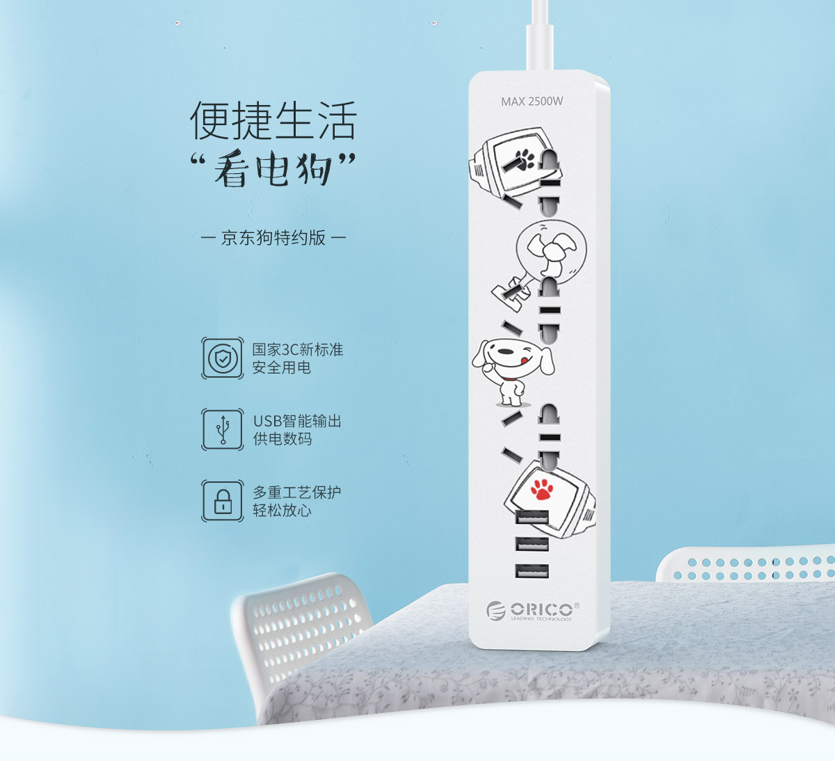 新国标便携桌面式排插京东狗特约版,2500W大功率
