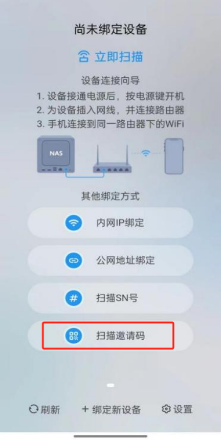 软件将自动扫描局域网内的NAS设备,选中对应设备即可完成设备绑定。