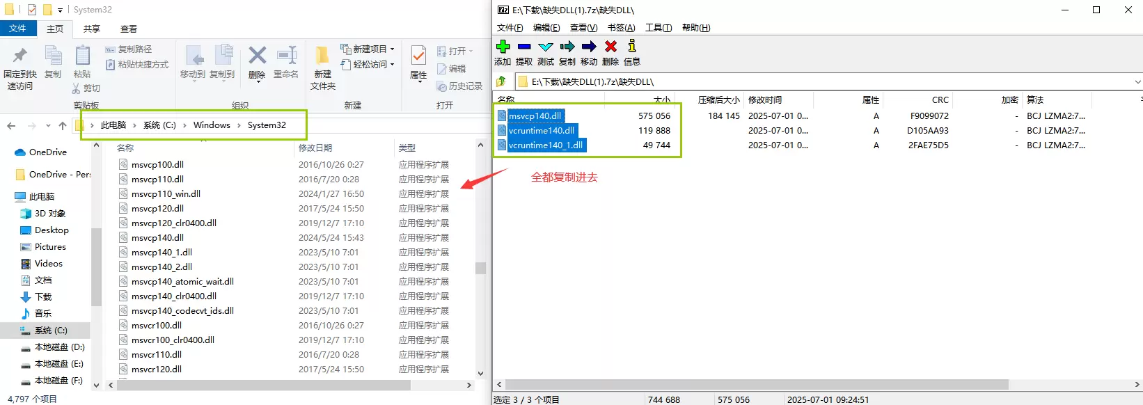 2、直接网上下载缺少的DLL文件复制到C:\Windows\System32系统文件夹内