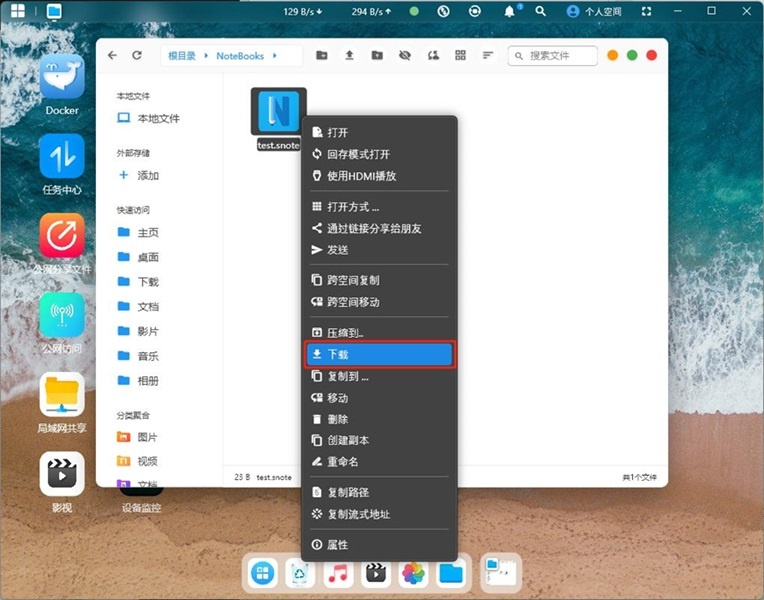 目前有以下几种方式:文件右键选择下载和通过Samba下载。