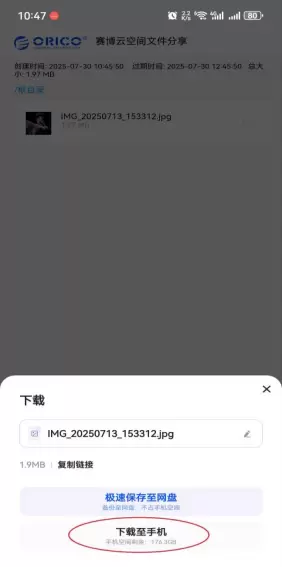 点击下载至手机,完成链接文件下载