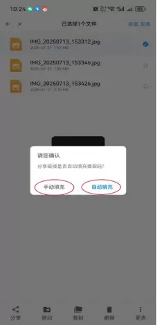 可选择“手动填充”或者“自动填充”。分享链接完成复制到粘贴板上,粘贴出来发送给朋友即可使用链接进行下载。