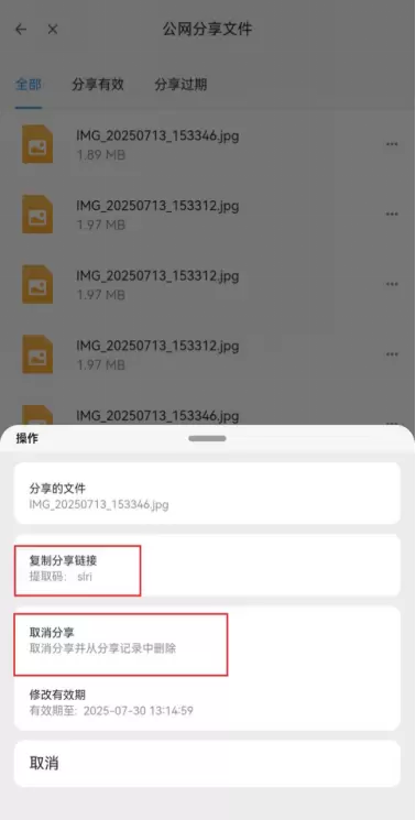 点击文件右边的“...”,即可对文件分享链接进行复制和取消文件分享。
