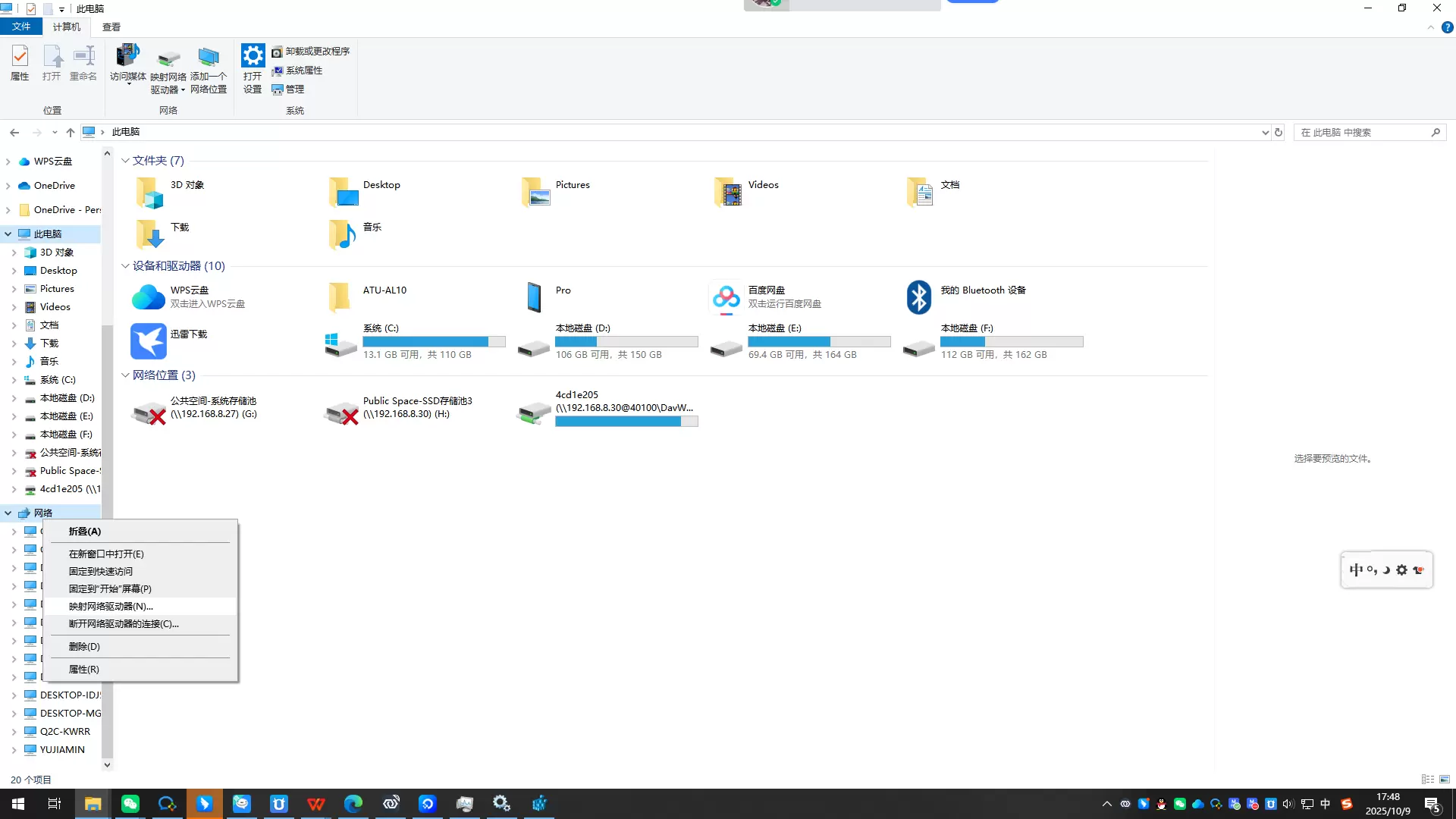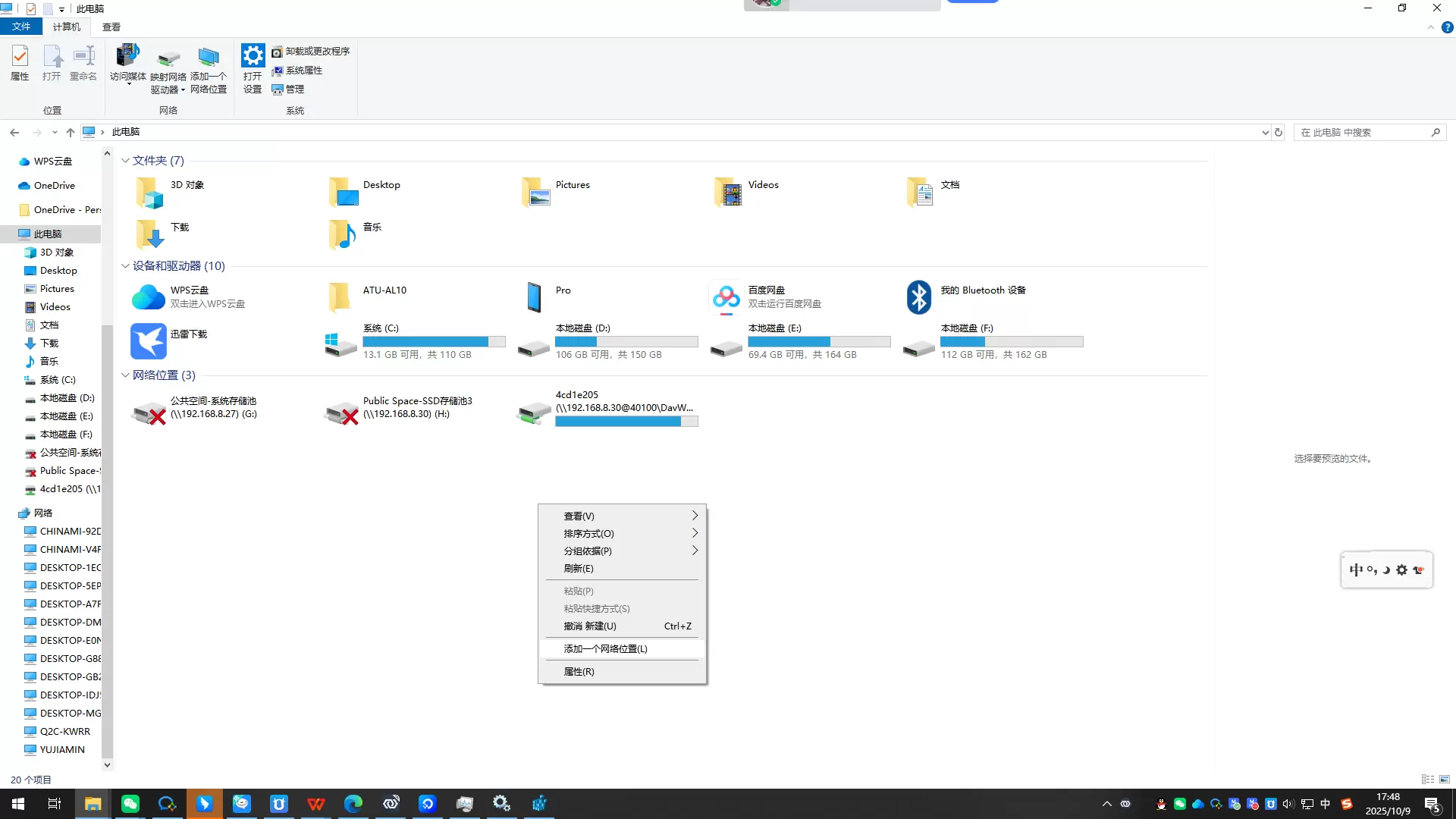 打开资源管理器,在此电脑的空白处右键添加网络位置,或者在网络处右键添加网络驱动器