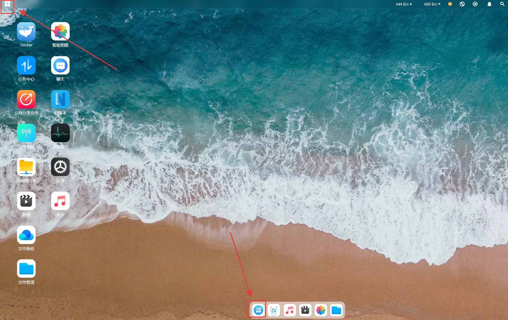 ①在客户端桌面的左上角和中间底部点开所有应用界面