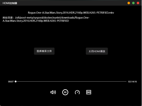 在HDMI控制器界面,可以点击底部的功能按钮对音视频输出做静音、暂停、倍速播放和选择音轨的操作。