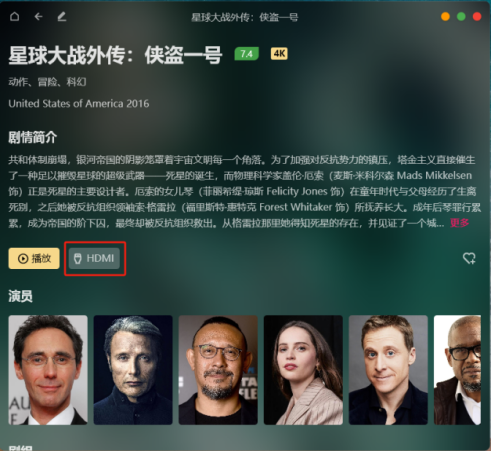 点击一个海报进到详情之后,点击“HDMI”弹出HDMI控制器。