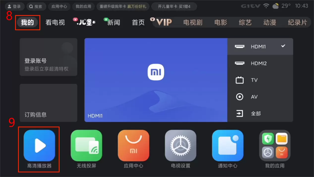 (以下操作以在小米电视上访问NAS设备上的影片为例)